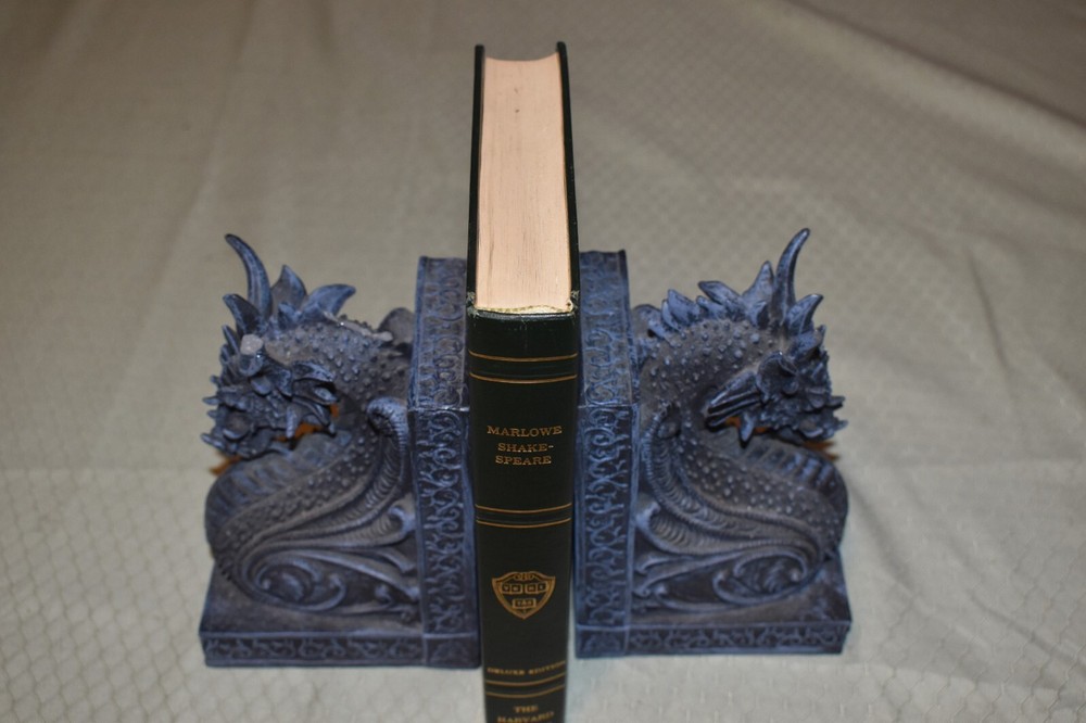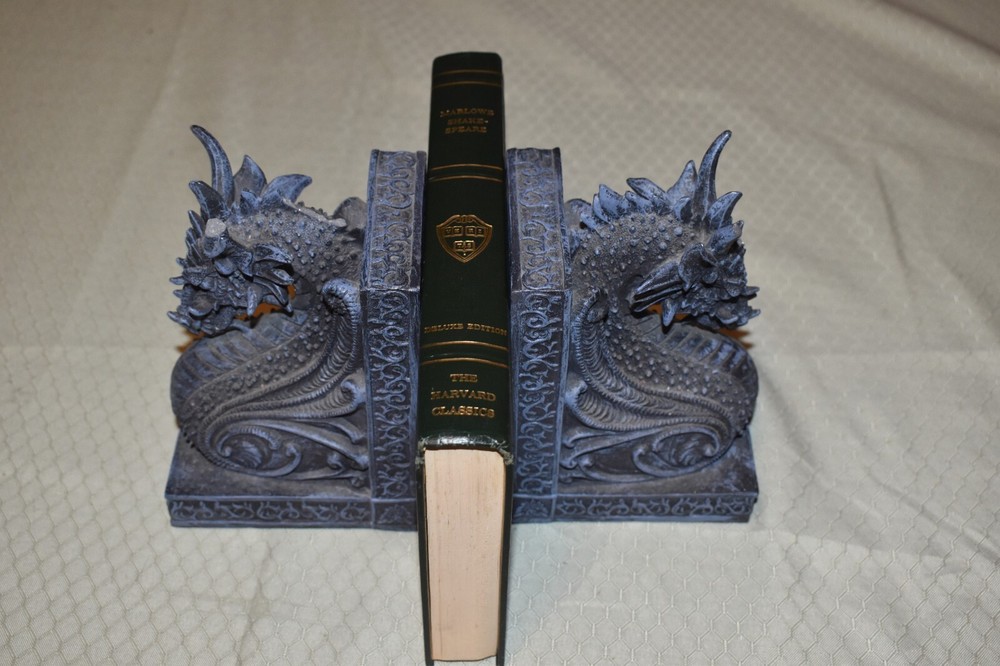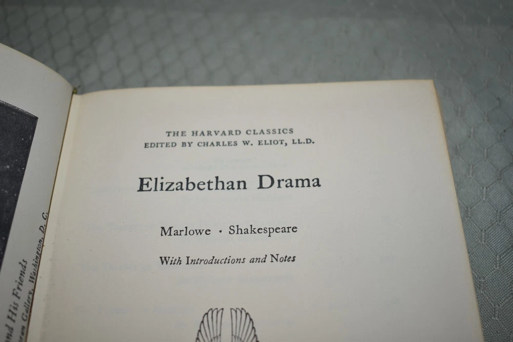 This is a green leather Harvard Classics edition of Elizabethan Dramas by William Shakespeare. Please note that only the noted books are for sale. Any background books or book ends are not included in this listing and are only props for the pictures. Please check pictures to verify condition. I ship in corrugated boxes that are sealed in some way (tape or wrap) to deal with moisture/weather and I use bubble wrap. Smaller paperbacks will be shipped in waterproof bubble mailers with cardboard to brace them on the trip. Higher end books (over $100) will have some form of double protection (double boxing or cardboard support inside a larger box). If there are any questions, please feel free to ask.