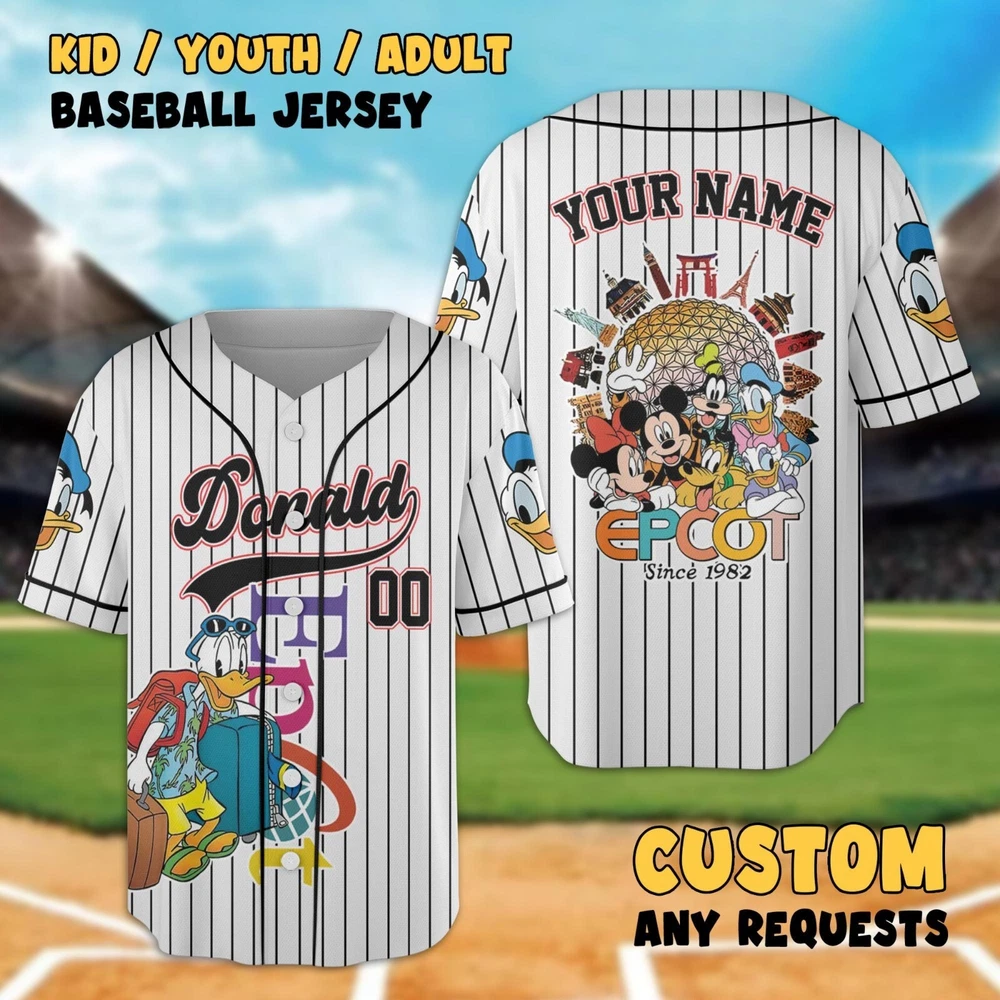 2025 Epcot Donald Duck Disney Baseball Jersey for Kids Men Women Festival Gift