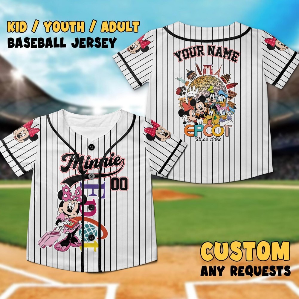 2025 Epcot Minnie Mouse Disney Baseball Jersey for Kids Men Women Festival Gift