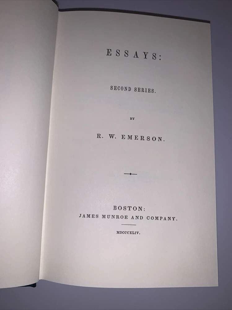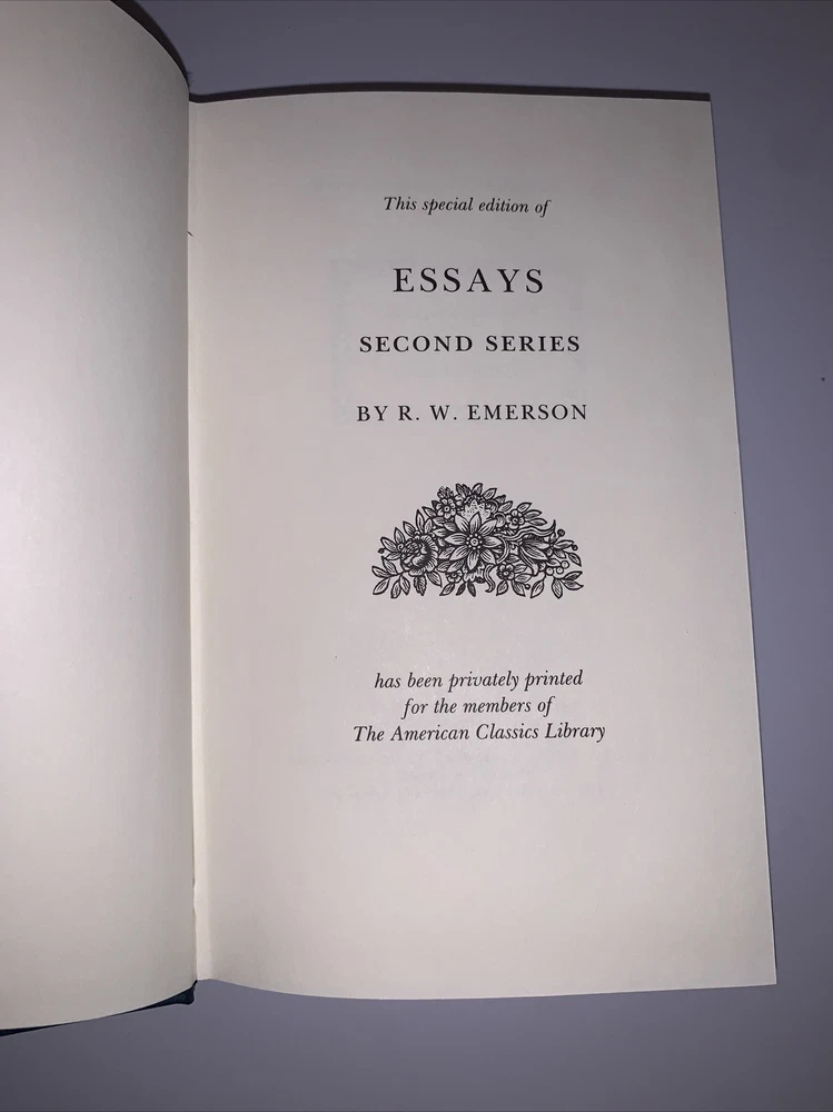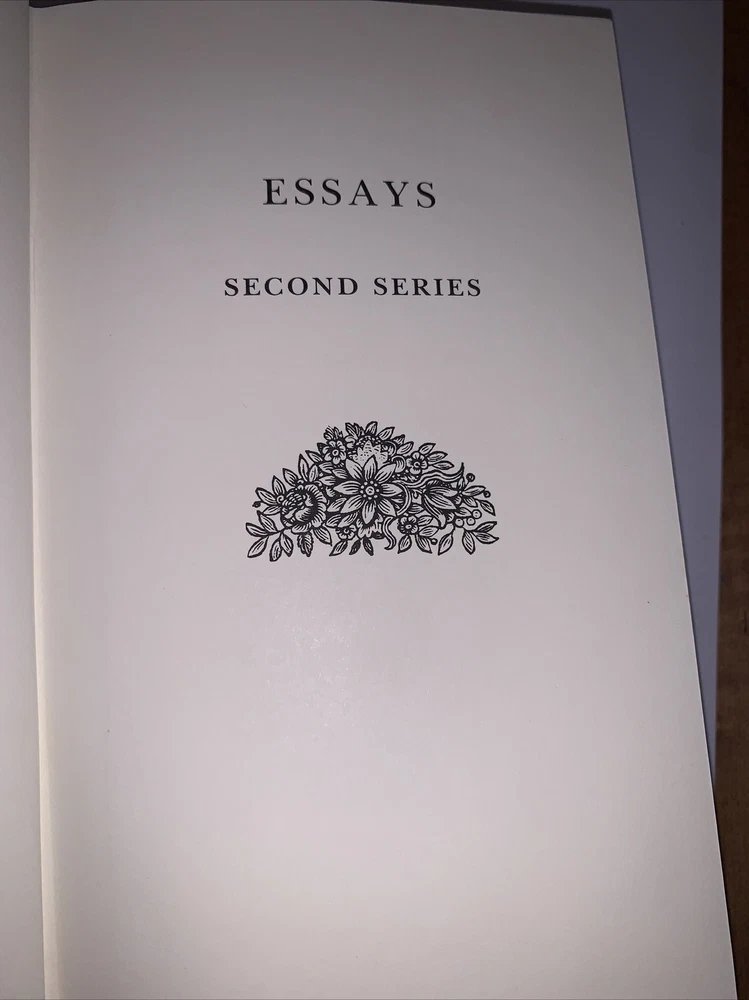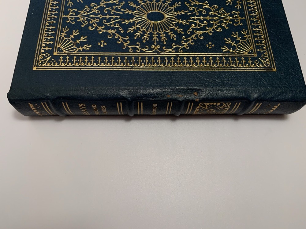 This is a pre-owned leather bound book. Walden, essays second Series by EmersonThis is a limited special edition by American classics library. The book is in good condition. There is one frayed area along the spine of the book which is highlighted in the photo. The front and back cover have darkened areas on the gold foil print. Some of the edges of the pages have alread where some of the gilt gold worn away from the edges. I have highlighted this in Photos as well.