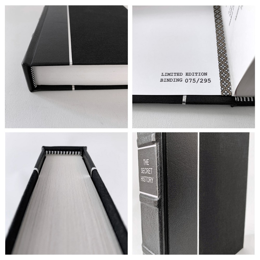 A beautiful hardcover book, quarter-bound in leather Personalized inscription available Binding: Limited edition Free worldwide tracked shipping Raised bands on spine Detailed leatherwork Black and white headbands Traditional spine title Free perzonalised inscription Limited edition binding (1500 available) Size 210 x 140mm Price : This listing is for the commission of professional bookbinding work. The all-inclusive price includes the bookbinding fee, the finished product as advertised, and tracked delivery. Authenticity : I am a professional bookbinder with over 30 years experience. My commissions and fine bindings are collected all over the world by bibliophiles, book enthusiasts and art collectors. Inscription : Optional personalized inscription on inside cover. Popular examples are Jane Smith March 2025 or Ex Libris Jane Smith or anything up to 250 characters. Ex Libris means from the library of / book belongs to . Your inscription will be positioned and formatted so it looks the absolute best it possibly can. Limited Edition : The traditional leather-bound binding is limited edition, just 1500 bespoke commissions available; the novel itself is the standard, currently published, unabridged version purchased to order. Binding : Presented in traditional leathercloth and Windsor bookcloth. Text-block : The complete and unabridged published novel. Paperback edition in English language. Bookbinding Commission : The price advertised is the fee for my services as a professional bookbinder, and a promise to deliver your book safely, as pictured* and as described. The book text-block has been paid for by myself, this includes all usual royalties paid in full. The fee you are paying is for the commission of bespoke work, for my expertise in bookbinding. The highly skilled work will provide protection and longevity, there are no alterations to the pages of the published book text-block. *Depending on the number of pages of the published novel, the depth of the book may be different than pictured.