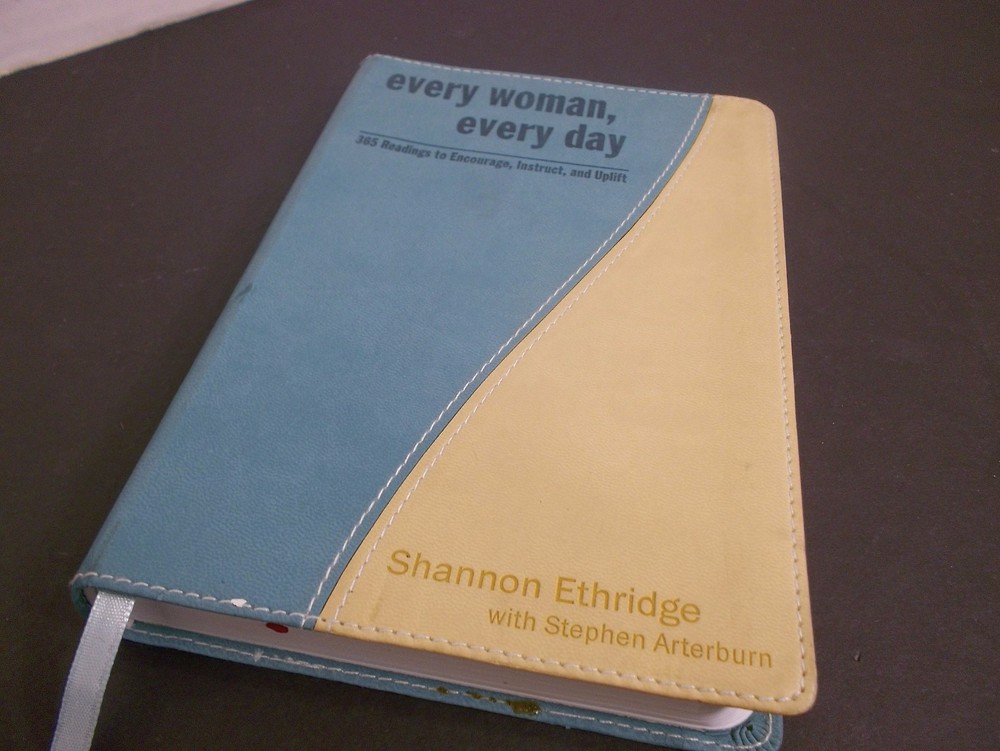 every woman, every day 365 Readings to Encourage, Instruct and Uplift Shannon Ethridge with Stephen Arterburn leather bound first edition. Each new day brings fresh opportunities for spiritual growth–along with challenges to your commitment to integrity. Subtle temptations to compromise often tiptoe their way into your thoughts. As you talk with misguided friends and experience the pressures of our sex-obsessed culture, you may begin to feel alone in your struggle for wholehearted purity. Like a faithful friend and accountability partner, Everyday for Every Woman provides the daily encouragement you need to withstand the pressures of temptation and pursue God’s best in every area of your life. Adapted from the best-selling Every Woman series, each one-page devotional reinforces key principles of sexual, emotional, and spiritual integrity. In addition, you’ll find practical advice and insights geared to your unique needs and struggles as a woman. Every Woman, Every Day: 365 Practical and Encouraging Readings for Sexual, Emotional, and Spiritual Purity (The Every Man Series)