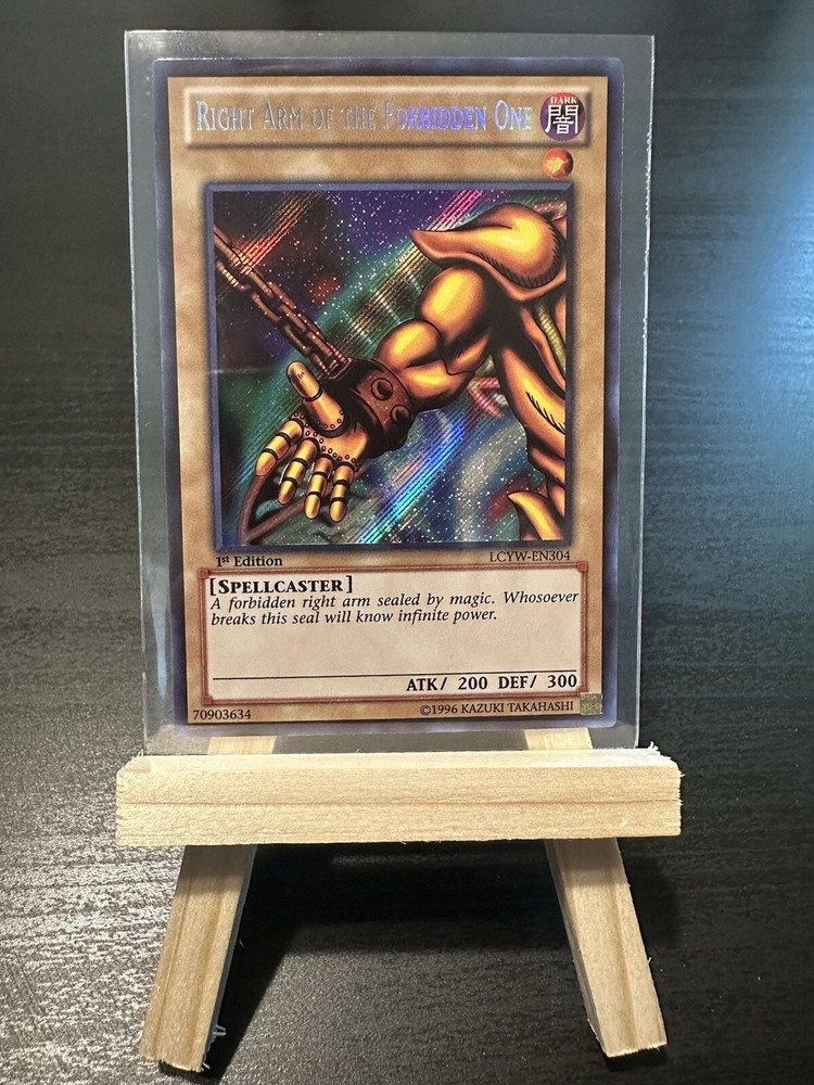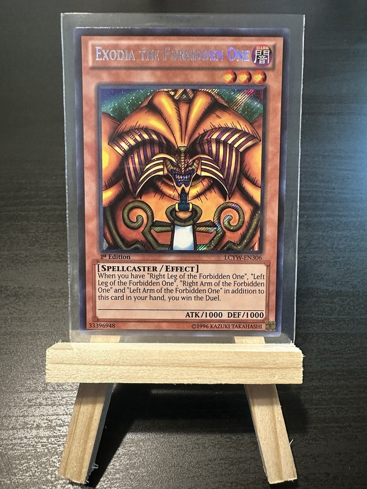 First edition, secret rare, and iconic, presenting the full Exodia set straight out of Legendary Collection 3: Yugi’s World! All five cards are in beautiful shape, straight from pack to sleeve, perfect for a true collector looking to grade. Personally, I wouldn’t throw these in a deck, but if you want to flex in GOAT format, there are perfect for your rogue strategy. Card Names: Exodia the Forbidden One Right Arm of the Forbidden One Left Arm of the Forbidden One Right Leg of the Forbidden One Left Leg of the Forbidden One
