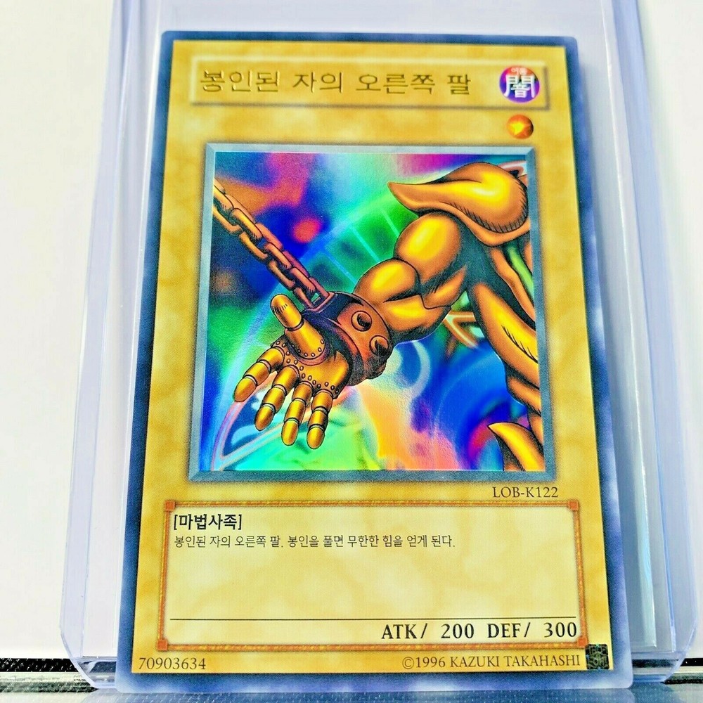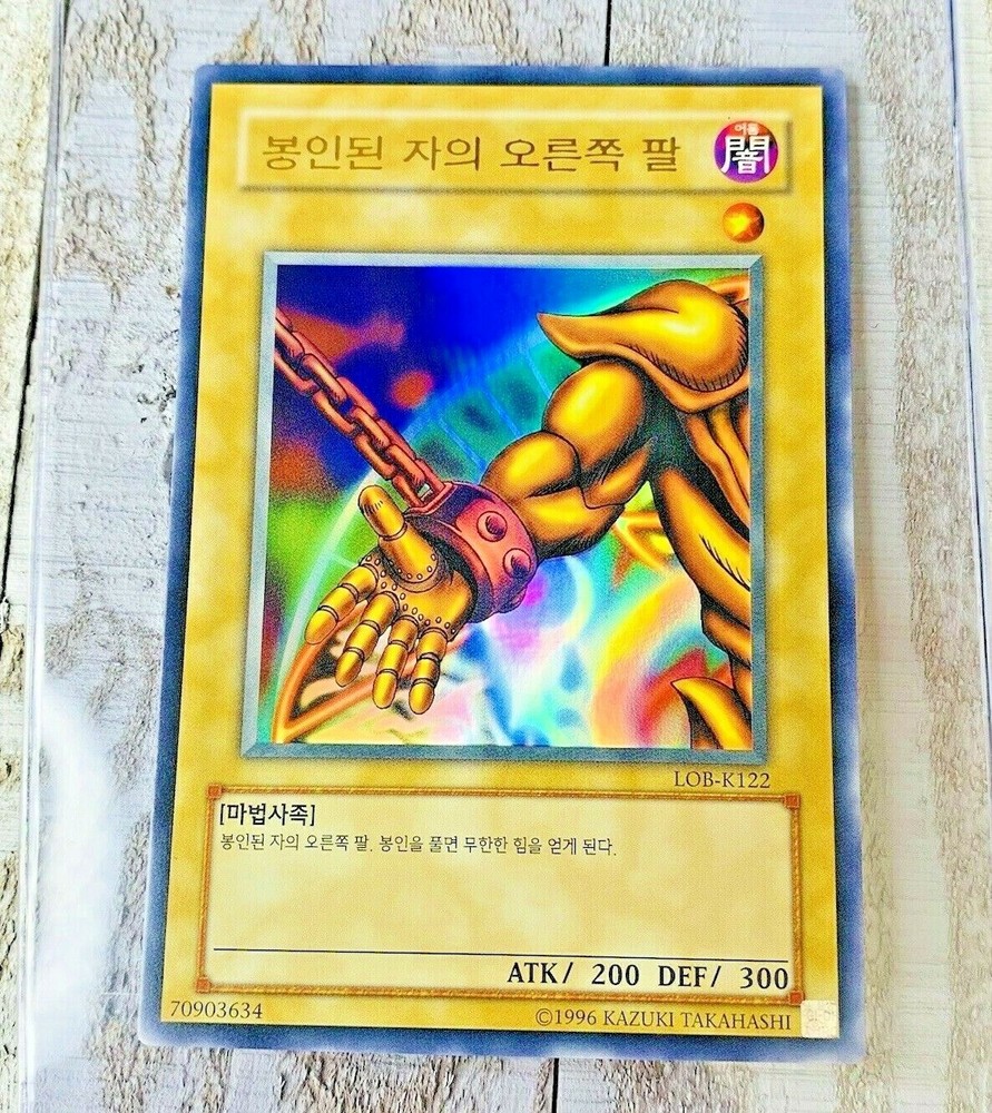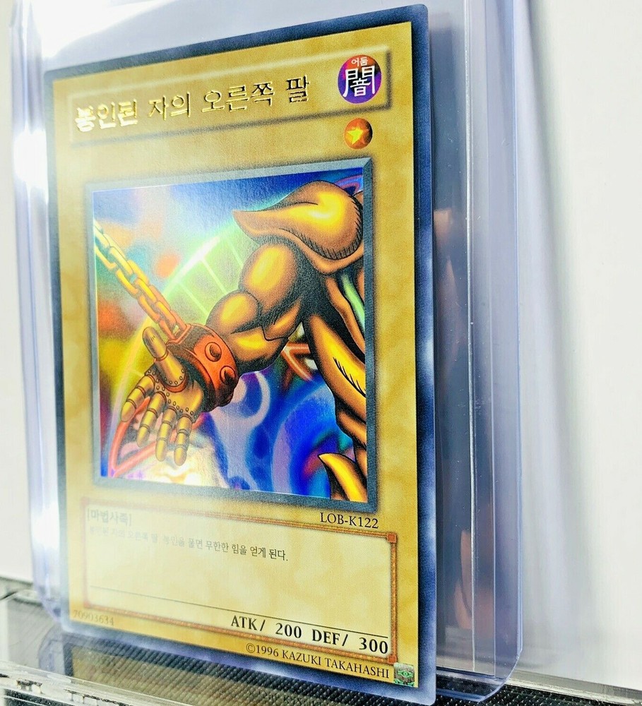 This is for a pack fresh KOREAN Right Arm Of The Forbidden One LOB-K122 ULTRA RARE FOIL HOLO Legend of Blue Eyes White Dragon KOREAN We have several in Stock / All are in same condition. Each card was pulled from a booster pack and placed directly into a protective sleeve and casing.