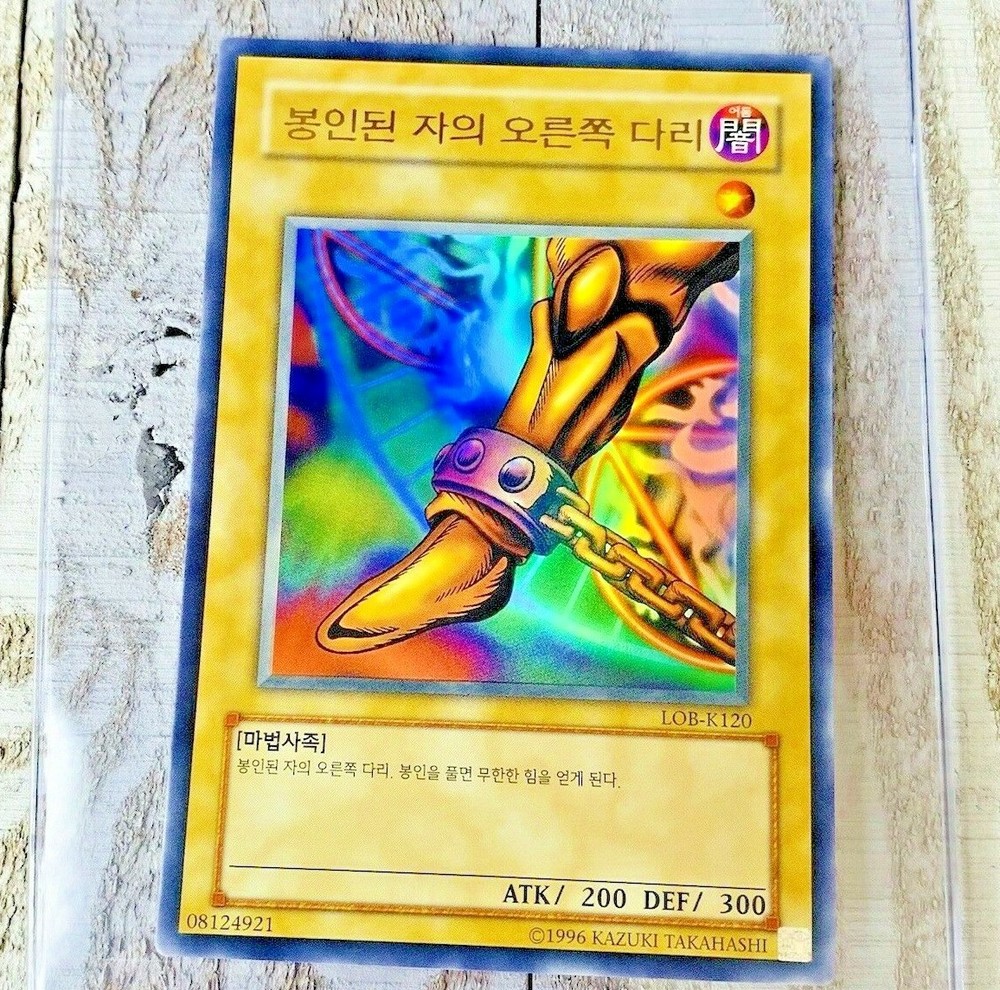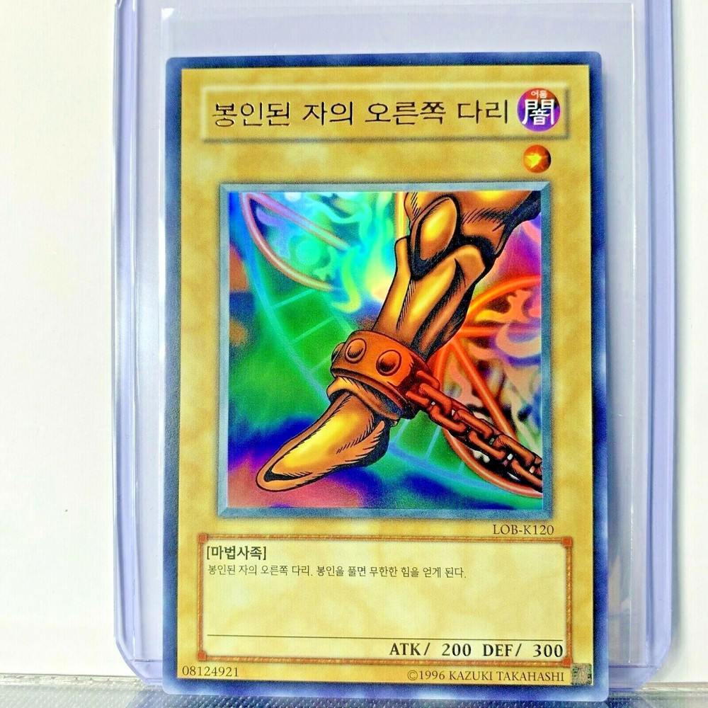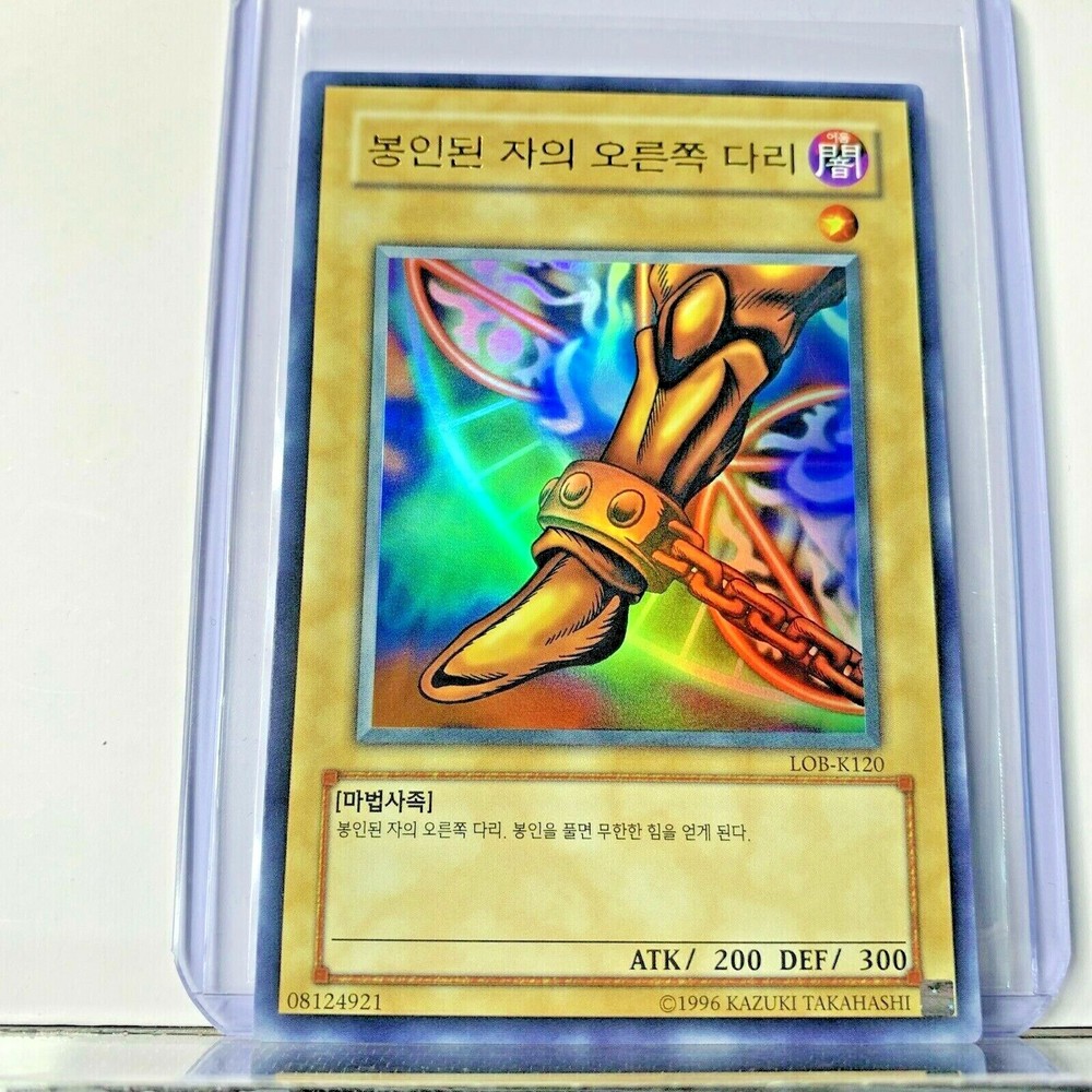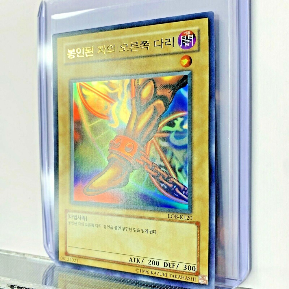 This is for a pack fresh Korean LOB-K120 Exodia Right Leg Of The Forbidden One Legend of Blue Eyes White Dragon Korean We have several in Stock / All are in same condition. Each card was pulled from a booster pack and placed directly into a protective sleeve and casing.
