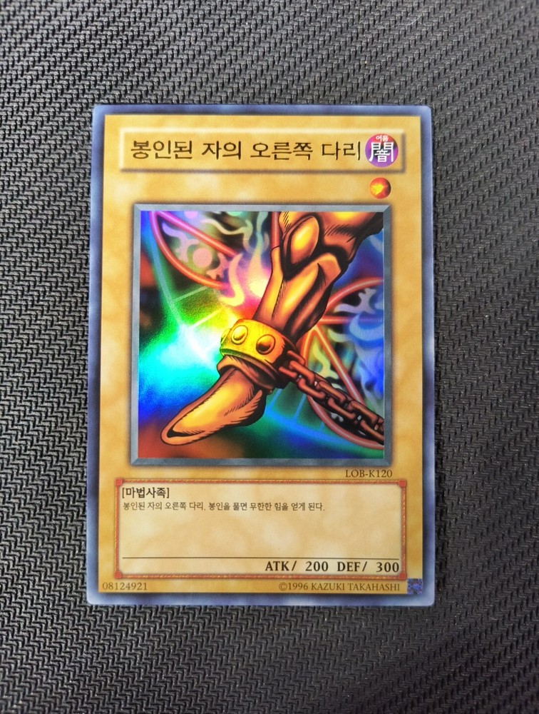 Experience the power of Exodia with the ultra-rare Right Leg of the Forbidden One card from the Legend of Blue Eyes White Dragon set. This foiled monster card features an angelic and ancient spellcaster with abnormal abilities that will enhance your collection. The 2003 Korean-made card is in near-mint or better condition, perfect for serious collectors and players alike. Add this ungraded card to your Yu-Gi-Oh! TCG deck or display it with pride. The card is autograph-free and manufactured by Konami, ensuring its authenticity and rarity. Don't miss your chance to own a piece of this iconic card game. Card MAY have slight whitening / chipping IF not listed as MINT. Please always check the image before a purchase. Card will be shipped in a toploader/cardsaver unless otherwise stated. All items are Final Purchase unless othersise stated. Thank you for looking! I have more items for sale on my store page as well!! All items are fully described to the best of my ability. If there are any questions or you’re confused about something. Do not hesitate to ask! Please examine photos carefully to evaluate condition All photos will be of the exact item you're receiving. Mint(M)- Cards in MINT condition are flawless. They show no signs of wear and should grade high should they be submitted for grading. NEAR MINT(NM) - Cards in Near Mint Condition are close to mint, but may have SLIGHT edgewear, scratching, and or chipping. LIGHTLY PLAYED(LP) - Lightly Played cards will show visible evidence of wear. These cards may have minor indents, whitening, nicks, and or scuffs. However the overall eye appeal will still be satisfactory. MODERATELY PLAYED(MP) - Moderately Played cards will simply have more advance stages of whitening, minor to major indents, nicks, light creasing, and or scuffs. These cards will show noticeable wear. HEAVILY PLAYED(HP) - Heavily Played cards are the bottom of the barrel. They will show major whitening, indents, nicks, and or scuffs. Creasing and overall damage may be present on these cards.