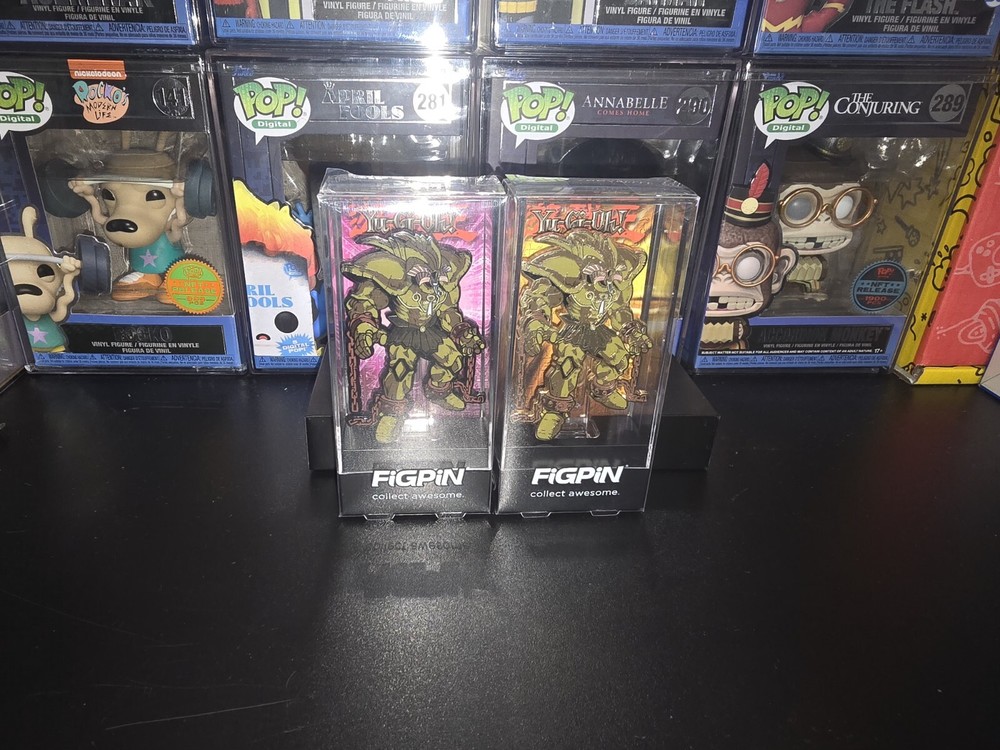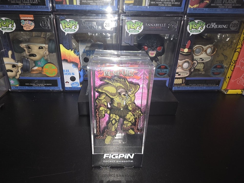 Both common and chase figpins are claimed, but will be unclaimed moment of purchase. This Exodia The Forbidden One 1522 Yu-Gi-Oh Figpin is a claimed gold chase limited edition of 500 pieces. It is a collectible pinback featuring the iconic character from the Yu-Gi-Oh series. The pin is made in China and is not handmade. With its limited availability and special design, this Figpin is sure to be a sought-after item for fans and collectors of Yu-Gi-Oh memorabilia.