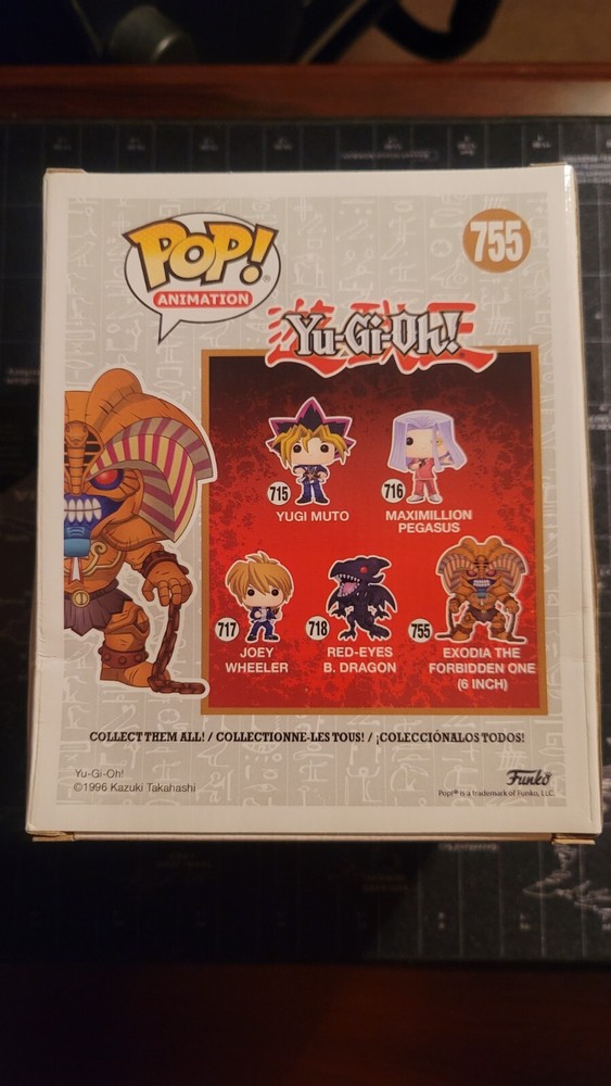 Get your hands on the Exodia The Forbidden One Funko Pop from Yu-Gi-Oh #755. This 6-inch tall vinyl figure is a must-have for fans of the popular TV/streaming show and franchise. Made by Funko, this Funko POP model features Exodia in a common pose and is part of the Pop product line.The figure comes in its original packaging, unopened and ready for display. This collectible is a perfect addition to any animation or Yu-Gi-Oh collection. Don't miss out on the chance to own this highly sought-after figure! Experience superior packaging and swift shipping for your exclusive Funko Pop! Although the box shows a slight imperfection at the bottom right, rest assured it won't compromise the excellence of your collectible. Anticipate top-notch protection during transit, and expect your prized item to be dispatched within 2-5 business days . Your satisfaction is our priority!