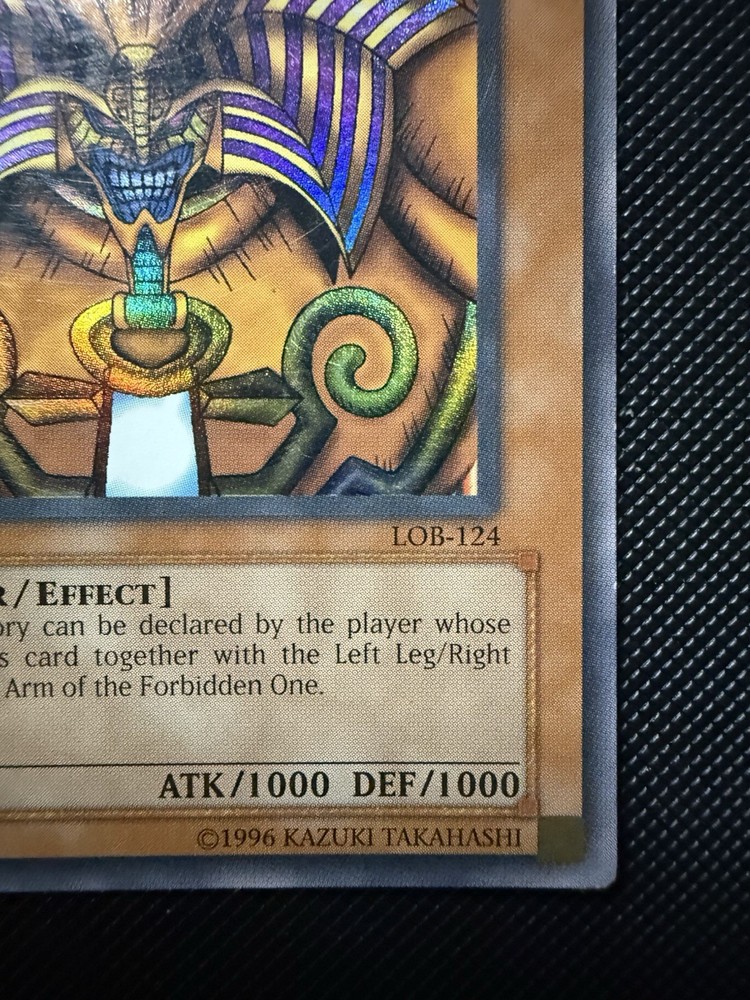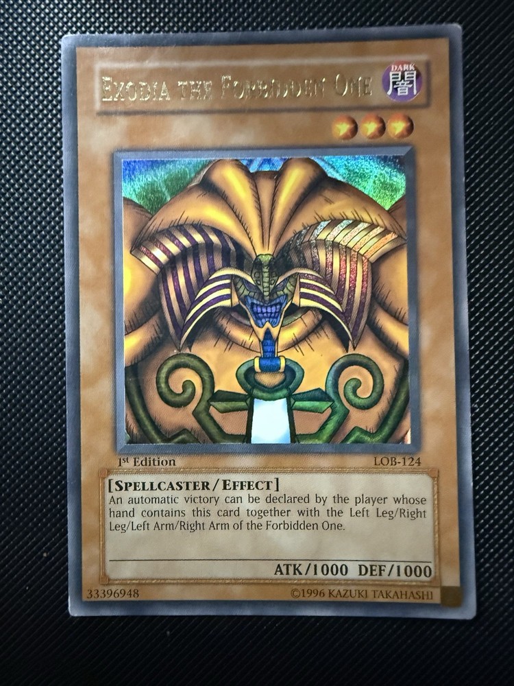 Delve into the world of Yu-Gi-Oh! TCG with the iconic Exodia The Forbidden One card, a must-have for collectors and duelists alike. This ultra rare spellcaster card, featuring the enigmatic Yugi Muto, is a 1st Edition gem from the Legendary Deck series, manufactured by Konami in the United States. Its dark attribute adds a sinister edge to your deck, ensuring that your opponents feel the chill when facing this formidable creature. Crafted from quality card stock, this card has been lightly played and is in excellent shape, ready to take its place in your collection or your next big duel. The card is ungraded, leaving you the freedom to have it professionally graded or to cherish it in its current state. Add Exodia to your arsenal and let its power speak for itself.