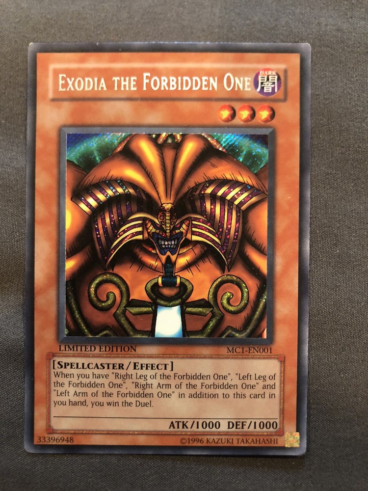Hi I am selling my Exodia card. It has always been properly stored and never damaged/mistreated. The card is a 8 out of ten on a grading scale. I am asking for $10 obo plus $5 so I can have it properly shipped and you will receive it the same way it left. If you have any questions just ask :)
