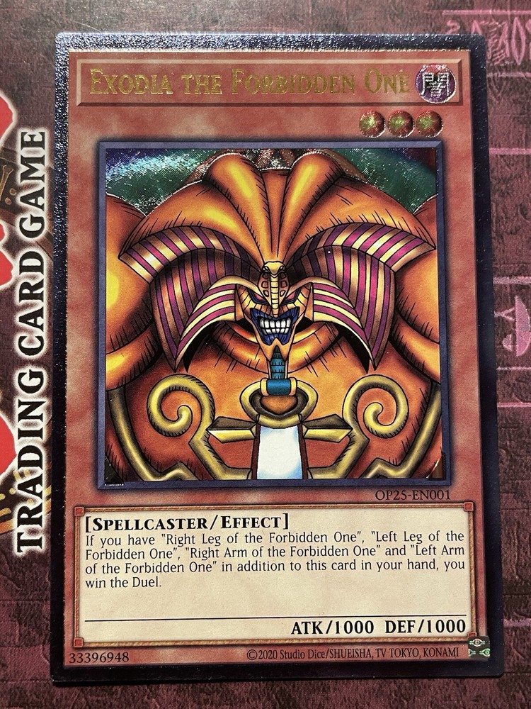 1x Exodia The Forbidden One (OP25-EN001) Ultimate Rare. Condition is near mint. Shipped with USPS. Fast shipping with tracking and will be sent in a top loader. Thank you!...
