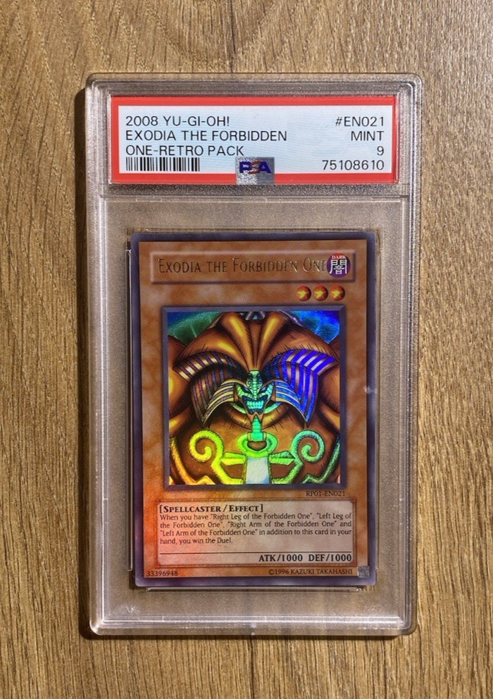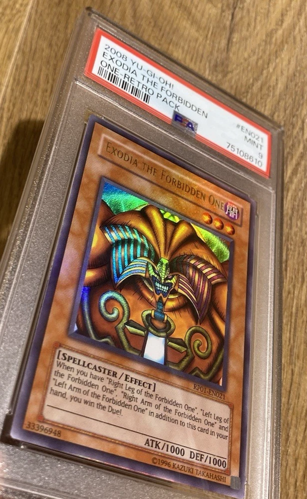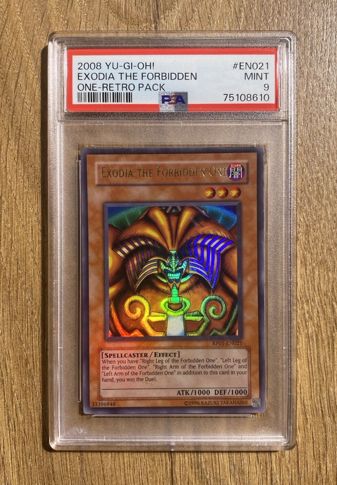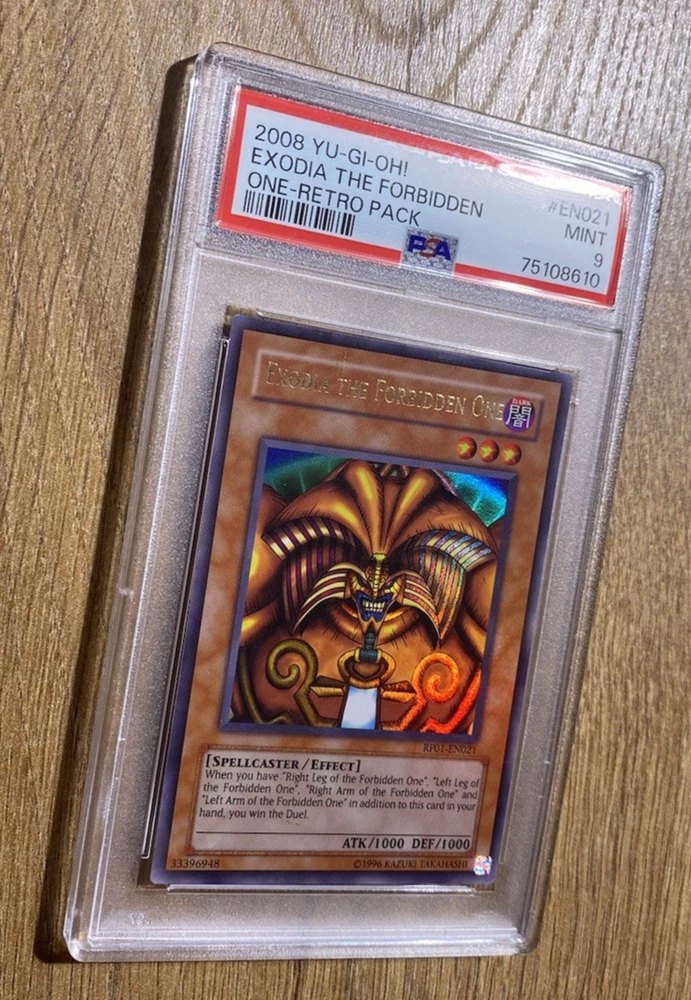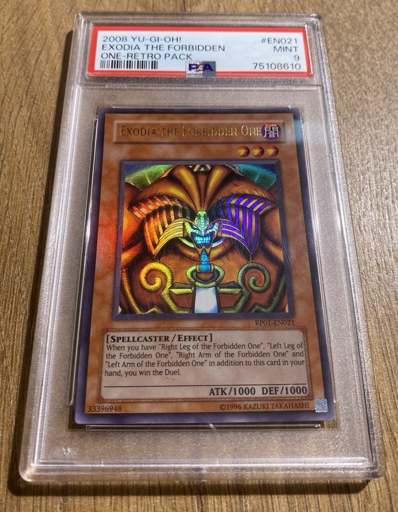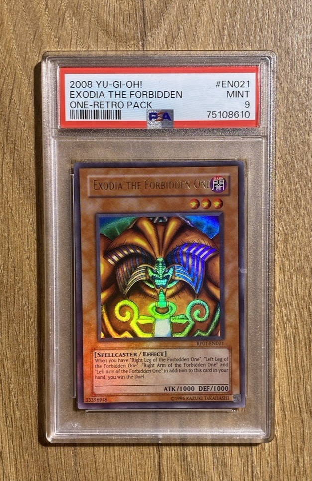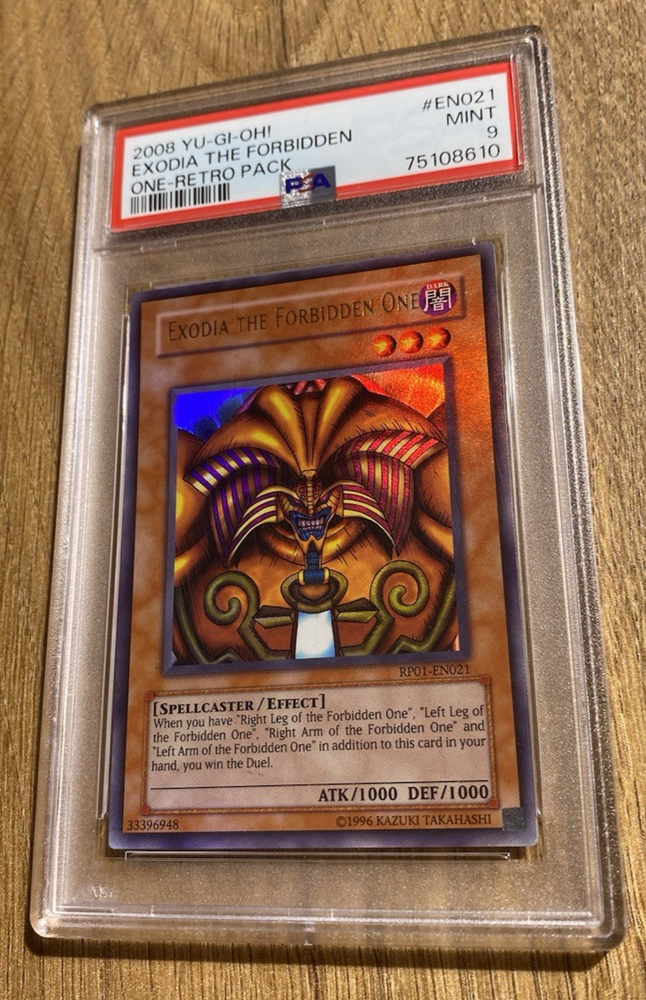 Exodia The Forbidden One | PSA 9: Mint 1 of 9 Copies !! Only 9 PSA 9 copies exist for this very special Exodia. There are no grade 10's in existence to date making this the highest graded Retro Pack 1 Exodia :D Very special piece :) RP01-EN021 If you have any requests, please do contact me and I will be more than happy to help :)