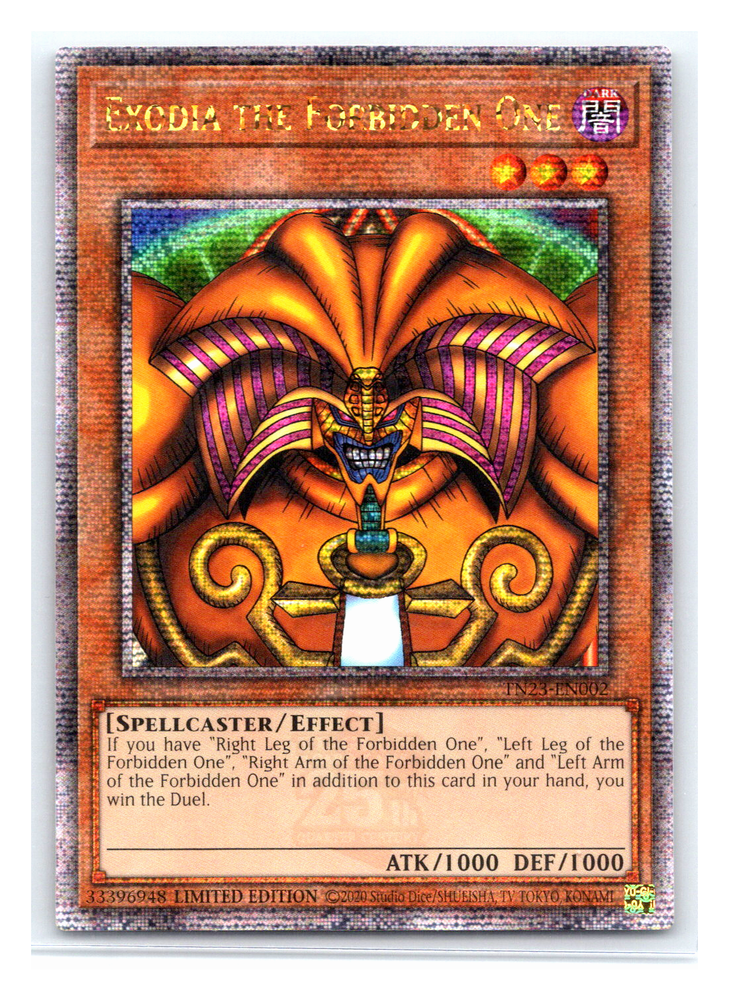 Exodia The Forbidden One - TN23-EN002- Quarter Century Secret Rare Limited Edition Yugioh Mint Condition Terms and Conditions • Sorry no international buyers • PAYPAL ONLY. Paypal Accepts credit card. • If you have any questions or quieries, just shoot me a message We are not responsible for any lost items during transit. Buyers automatically quality for free tracking when order is over $40. For combined shipping to save on shipping cost, PLEASE commit to the purchase of those items via then select the promotion postage option. AMAZING VALUE ! ROCK BOTTOM PRICE ! 100% AUTHENTIC Buyers automatically quality for free tracking when order is over $40 Items are usually sent securely double sleeved and with thin cardboard paddings if required. Otherwise , You may also add a top loader to your purchase ! Toploader: https://www.ebay.com.au/itm/352812399479 Shipping fee is $1 for the item but it will be deducted when you check out using combined shipping !
