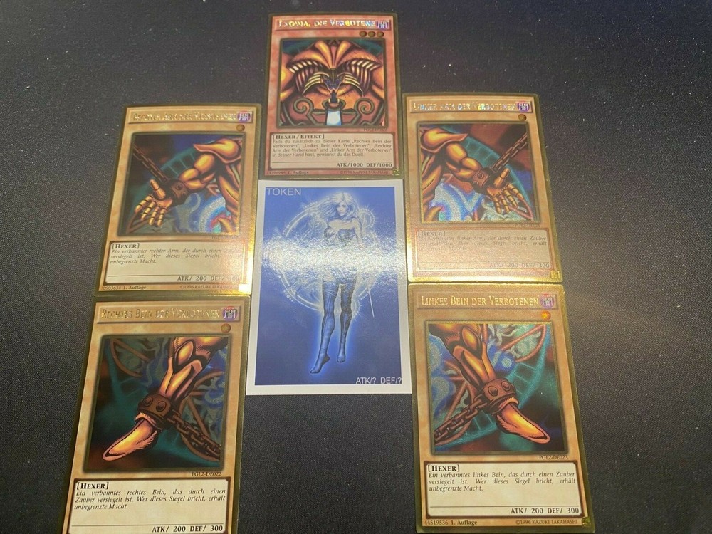 You are buying: Exodia the Forbidden One Complete PGL2-EN026 DE026 GERMAN SET ALL FIVE PIECES LIGHT PLAY SET Condition: Light Play | Language: German All photos are stock unless mentioned otherwise. Card edition, rarity, etc. is listed in the title and description. Store Policies If you have any questions or can't seem to find something that you want please do not hesitate to contact us. We do not list our entire inventory on eBay. We will respond to all questions within one business day. Info: Items will be shipped within 1 business day upon receiving cleared payment. We ship Monday through Friday in order to get the item(s) to you as quickly as possible Before leaving neutral or negative feedback, please contact us beforehand so we can discuss the issue. Feel free to message me with any questions you have regarding this auction or my policies. Grading Scale: This is the scale we use when listing cards. Please read carefully and check the listing title's condition so you know what to expect: Near Mint (NM) - Cards with this grade will contain no more than two micro blemishes. (A micro blemish is a small almost invisible scratch or ding) . NM cards do not have visible signs of play which means no whitening, no fading, no edge wear, no corner or side dings, no creases, no tears, no rips, no small pieces missing, and no inking of the face or borders of the card. Lightly Played (LP) - Cards with this grade will contain more than two micro blemishes. They may have a dinged corner, mild edge wear or whitening, and they may contain some fading. LP cards do not contain the following types of damage: no creases, no tears, no rips, no small pieces missing, and no inking of the face of the card. Moderately Played (MP) - Cards with this grade will contain some form of the following: dinged corners, edge wear or whitening, fading, small creases or bends that do not extend across the entire card, and they may also be signed by someone. MP cards do not contain the following types of damage: no tears and no rips. Heavily Played (HP) - Cards with this grade will contain some if not multiple of the following: dinged bent or missing corners, heavy edge wear, extreme fading, large creases or bends that can extend across the entire card, and they may also be signed drawn on or coloured in. HP cards do not contain the following types of damage: no tears and no rips. Damaged - Cards with this grade have it for a reason. Not for high-level events unless they are extra deck cards. Cards with this grade have destroyed or missing corners, heavy edge wear, extreme fading, multiple large creases or bends that can extend across the entire card. They can be signed, drawn on, coloured in, ripped, torn, severely water damaged, and missing pieces. Shipping Information: We ship Monday through Friday, barring national holidays during which the United States Postal Service is closed. The shipping and handling time is one business day once payment is cleared. For shipping in the United States: First Class Mail : FREE for all singles. Orders over $20 (exc. sales tax) receive free tracking. Priority Mail with Delivery Confirmation : $7.99: for 2-3 Day shipping USPS Priority Mail Express: $32.99 for 1-2 Day shipping For international orders: We will ship to almost any country. The buyer is responsible for any duty or customs tax. The cost of shipping is based on the shipping address and will be shipped with tracking and will be covered under PayPal's Seller/Buyer Protection program. Return Policy: You must return items sold and fulfilled by Phantasm Gaming within 14 days of delivery to be eligible for a refund. Returns which are damaged in the mail due to improper return packaging will not receive a refund. The buyer will pay for return shipping. We will process a full refund for all items returned in their original condition.