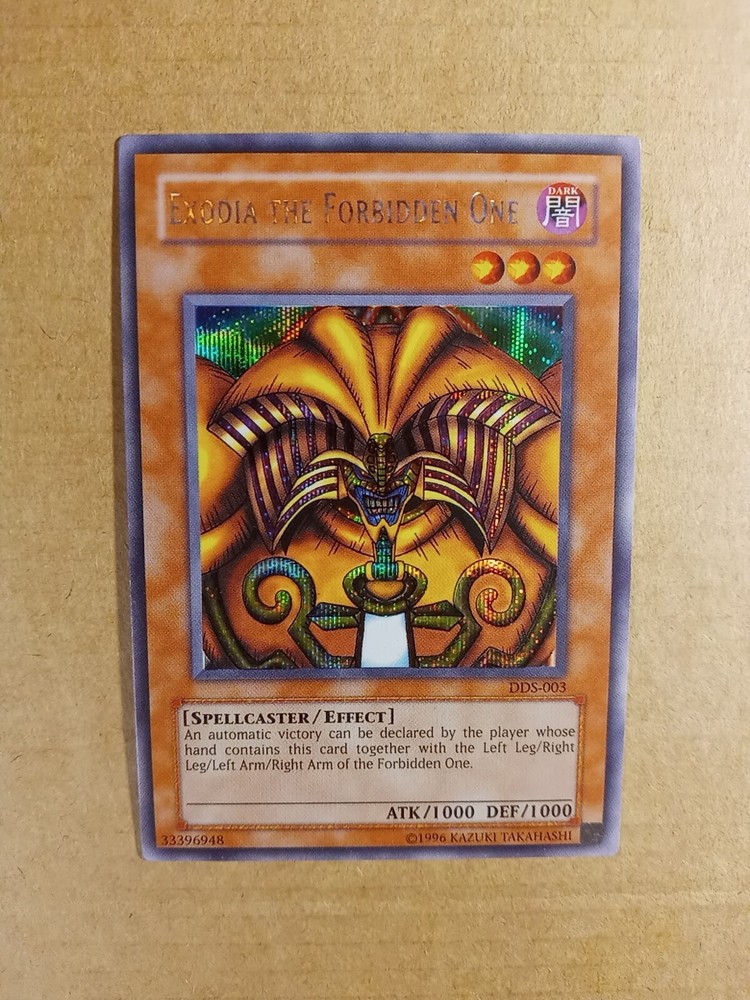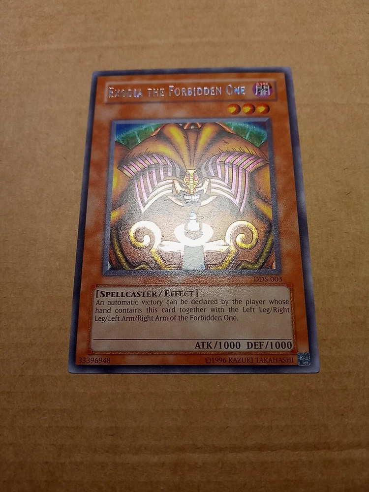 For sale is a Exodia the Forbidden One DDS-003 Prismatic Secret Rare in Near Mint condition. Please see images provided as that will be exactly what you will receive. I have tried to highlight most if not all of the issues that I could find. I believe this card to be near mint, but please make note of the slight corner issues on the back. The rest of the card feel very mint-like with a wonderful surface and almost no imperfections on the front and the same holds true of the back, minus the corner issues. Shop with confidence knowing that I try to provide detailed images of any issues that might exist. As a result, though, a lot of my images come out stronger than is usually the case in person in my strive to be transparent about what I am selling. Please refer to the first front and back images to see how the card more likely looks in person. And then see the pictures that follow with an obvious light glare to see defects made visible under a strong light. Ships within 3 business days. Best offers considered. Please do not submit a best offer unless you intend to follow through on the transaction. If an offer is accepted, all other interested parties/watchers cease when the listing ends and a buyer backing out after the fact costs sellers much more than just their time. Please note that all sales are final and returns are not accepted. If you have additional concerns or questions, please feel free to message me before purchasing. Please feel free to see my other listings to see what else I have for sale. I may have other listings of similar or the same card for sale. Starting this year, I will also be including a bonus item in all orders over $40. It will be a piece of kpop memorabilia with a personal favorite idol of mine just as a special way of saying "thank you" by providing what I hope will be a pleasant surprise. :) Thanks for looking!~