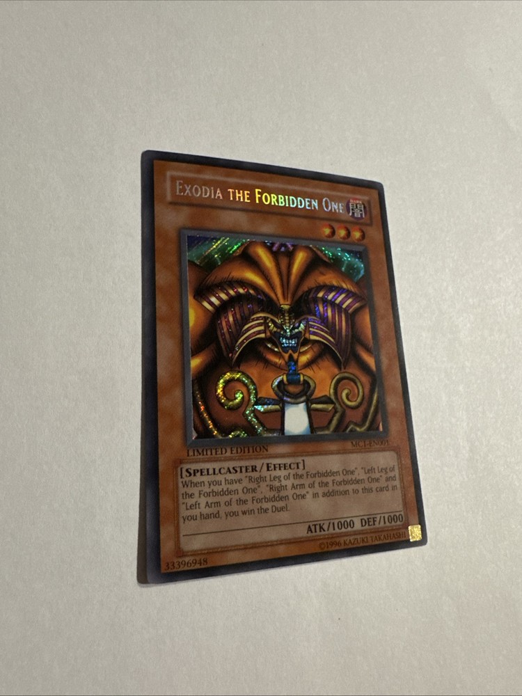 Unleash the power of Exodia the Forbidden One from your Master Collection with this limited edition MC1-EN001 card. A must-have for collectors and duelists alike, this iconic trap card is a staple in the Yu-Gi-Oh! universe, seeking to elevate your game and add a touch of nostalgia to your deck. With its distinctive artwork and place in the Master Collection Volume 1, this card is not just a plaything but a piece of history. Whether for competitive play or as a centerpiece in your collection, Exodia awaits to be the cornerstone of your strategy or the jewel of your assemblage.