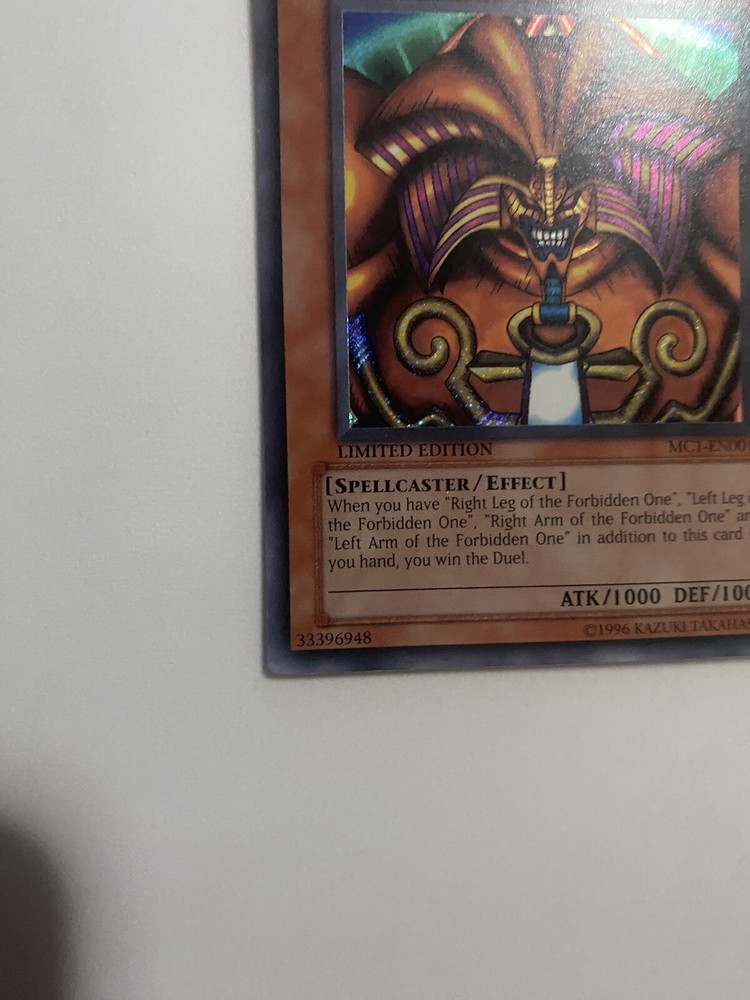 This limited edition Exodia the Forbidden One card from the Master Collection Volume 1 is a must-have for any Yu-Gi-Oh! TCG collector. With its dark color and spellcaster creature type, this card features an attack and defense of 1000, making it a formidable addition to any deck. Its rarity is a secret rare, and it is manufactured by Konami. The card is in English and has the card number MC1-EN001. This card is perfect for those who are looking for a unique and rare collectible card game individual card. Its features include a limited edition and it is categorized under Toys & Hobbies and Collectible Card Games. Get your hands on this highly sought-after card and add it to your collection today!
