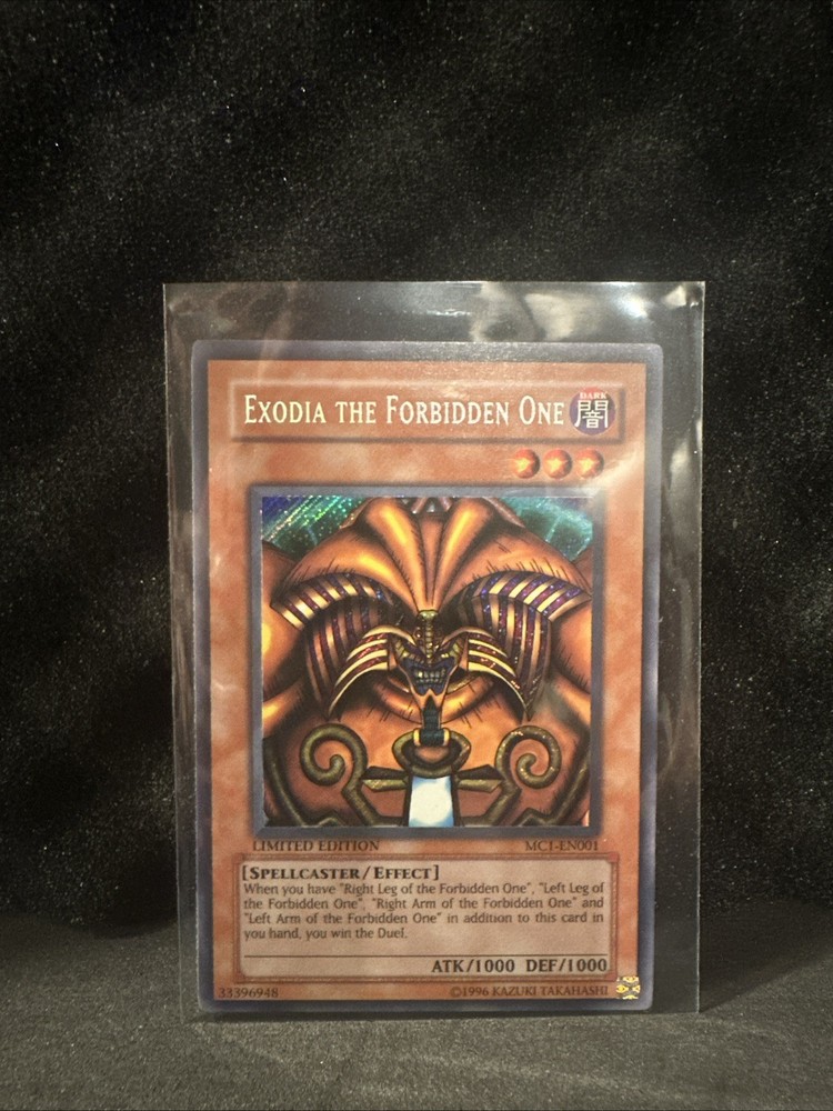 Exodia the Forbidden One MC1-EN001 Master Collection Volume 1 Limited Edition is a highly sought-after Yu-Gi-Oh! TCG card. This effect-type card is a spellcaster with a dark attribute and has a defense/toughness of 1000. It also has an attack/power of 1000. This secret rare card is a must-have for any collector and features the limited edition Master Collection Volume 1 design. Manufactured by Konami, this card is in English and has the card number MC1-EN001. Add Exodia to your collection and become a force to be reckoned with in the game.