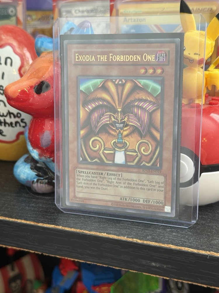 Elevate your Yu-Gi-Oh! TCG collection with the iconic Exodia the Forbidden One, card number RP01-EN021 from the nostalgic Retro Pack Unlimited series. This Effect-type card is a must-have for players and collectors alike, featuring the formidable power of a Spellcaster creature type with an attack and defense of 1000. Crafted by Konami, this Ultra Rare card speaks to the heart of the game's rich history. Its dark attribute lends a shadowy aura to your deck, and with English language text, it's ready for immediate play or display. Add Exodia to your arsenal and unleash the strategic depth of this timeless piece.