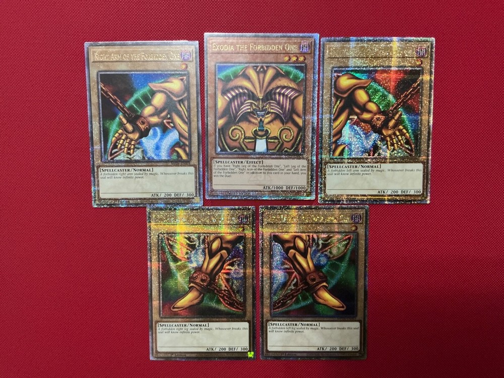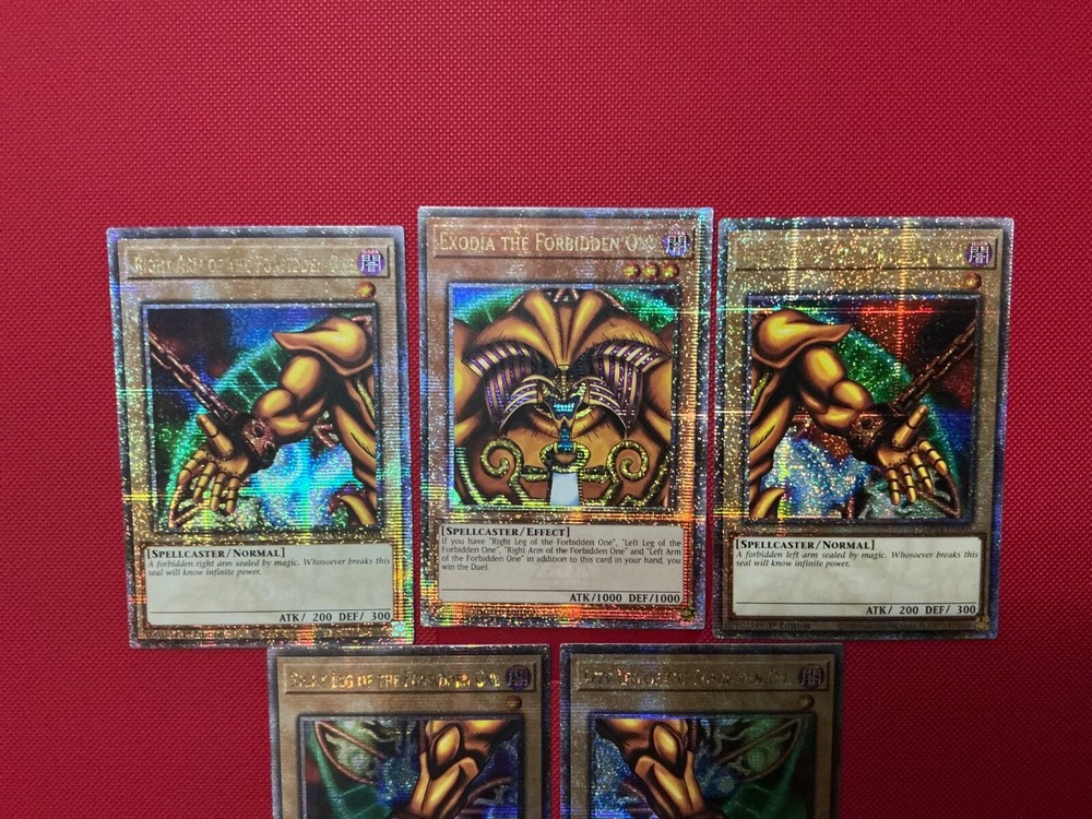 This Exodia set is absolutely stunning! The Quarter Century Secret Rare finish makes it shine like a true collector's treasure. The card arrived in perfect condition, just as pictured—crisp edges, vibrant colors, and flawless foiling. A must-have for any serious Yu-Gi-Oh! fan or collector. Worth every penny!