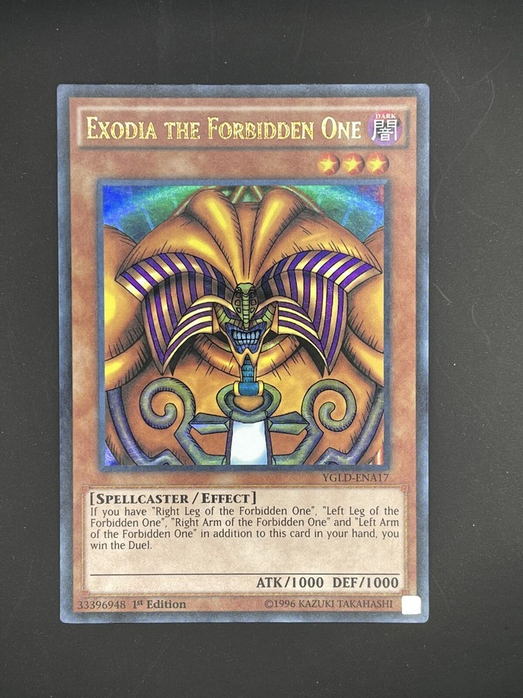 Exodia the Forbidden One - Effect Monster - Ultra Rare - YGLD-ENA12 The card In the pictures is the EXACT card you will get! Cards are always stored in a top-loader hardcase + soft sleeve and shipped securely in a bubble mailer. Message me if you have any questions! I'm always happy to make a deal.