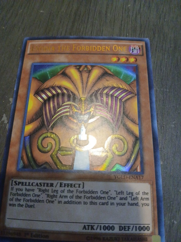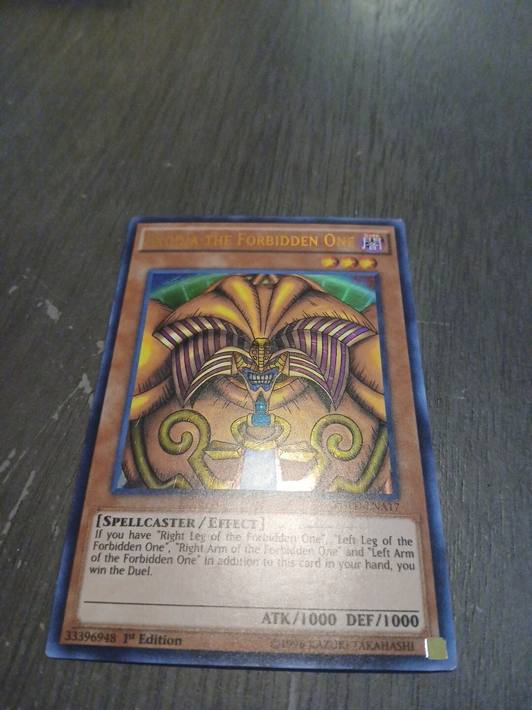 The product is the Ultra Rare "Exodia the Forbidden One" card from the Yu-Gi-Oh! Trading Card Game, featured in the King of Games: Yugi's Legendary Decks set. This 1st Edition card is a Spellcaster type creature with 1000 Attack and Defense points. Known for its powerful effect, Exodia the Forbidden One is a sought-after card among collectors and players. Manufactured by Konami, it is a key component in the iconic Exodia card set.