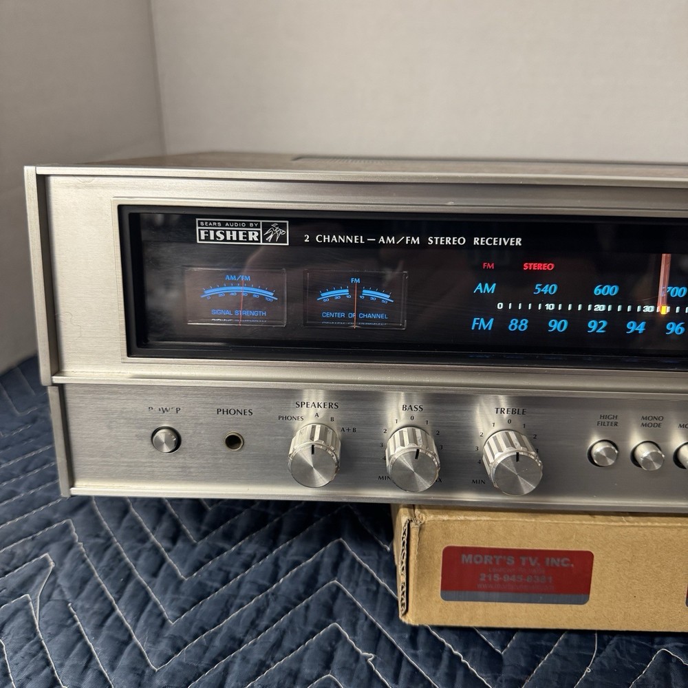 FISHER 143-92531600 VINTAGE AM/FM STEREO RECEIVER - SERVICED - CLEANED - TESTED. THIS VINTAGE STEREO RECEIVER WORKS AND SOUNDS GREAT AND IS IN EXCELLENT CONDITION INSIDE AND OUT. WE REPLACED ALL DEFECTIVE CAPACITORS AND ANY OTHER DEFECTIVE COMPONENTS. INSTALLED LED LAMPS. REPAIRED ALL POOR SOLDER CONNECTIONS. CLEANED ALL CONTROLS AND SWITCHES. ALIGNED THE FM CIRCUIT. (WE HAVE BEEN IN BUSINESS FOR OVER 60 YEARS REPAIRING VINTAGE AUDIO EQUIPMENT.) IF YOU HAVE ANY CONCERNS, PLEASE CONTACT US PRIOR TO YOUR PURCHASE.