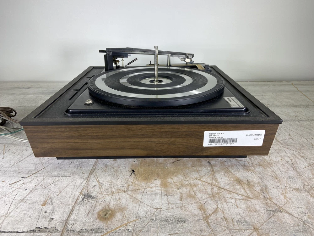 REUSE IT | Jacksonville, FL Visit Our Store FISHER 225-XA TURNTABLE W/ PICKERING V/15/AT-2 CARTRIDGE - (PARTS) SPECIFICATIONS CONDITION: PARTS SERIAL NUMBER: 28422 FUNCTIONALITY TECH NAME: JAMIE OPERATIONAL CHECK: PARTIAL OP CHECK POWERS ON: YES SOUND CHECK: FAIL OUTPUT CHECK: FAIL POWER CABLE INCLUDED: YES (ATTACHED) INSPECTION AND CONDITION NOTES: NORMAL WEAR AND TEAR UNIT APPEARS TO BE IN GOOD OVERALL PHYSICAL CONDITION, BUT HAS ONLY BEEN PARTIALLY TESTED UNIT IS FOR PARTS AND SOLD AS-IS PARTS IN THIS UNIT ARE ASSUMED TO BE NON-FUNCTIONAL/DAMAGED THIS UNIT HAS NOT BEEN FULLY TESTED AND ISSUES MENTIONED MAY NOT BE ONLY ISSUES PRESENT UNIT POWERS ON AND PRODUCES AUDIO. HOWEVER, UNIT DOES NOT PRODUCE CLEAR AUDIO. NO FURTHER TESTING UNIT IS USED AND SHOWS SIGNS OF WEAR & TEAR (SCRATCHES, SCUFFS, CLEANLINESS, MISSING PARTS & PIECES SUCH AS SCREWS & RUBBER FEET, ETC.) *PLEASE SEE PHOTOS* AUTHENTICITY WE GUARANTEE THAT ALL ADVERTISED PRODUCTS ARE 100% GENUINE. IMAGES PRODUCT IMAGES ARE FOR ILLUSTRATIVE PURPOSES ONLY AND MAY DIFFER FROM THE ACTUAL PRODUCT. WHEN MULTIPLE QUANTITIES ARE AVAILABLE, IMAGES ARE OF ONE ITEM ONLY. 3-DAY SHIPPING GUARANTEED PROCESSING TIMES VARY FROM 2-3 BUSINESS DAYS. PURCHASES SHIP NO LATER THAN THREE BUSINESS DAYS AFTER PLACED. PLEASE KEEP IN MIND THAT WEEKENDS AND HOLIDAYS MAY DISRUPT SHIPMENT TIMES. RETURNS & ORDER CANCELLATION PLEASE REVIEW ALL IMAGES CAREFULLY AND ASK ANY QUESTIONS PRIOR TO SUBMITTING AN OFFER. THERE ARE NO GUARANTEES OUTSIDE OF WHAT WE HAVE STATED WITHIN OUR DESCRIPTION. PLEASE MESSAGE US PRIOR TO SUBMITTING A RETURN REQUEST; MOST ISSUES CAN BE RESOLVED VIA MESSAGING.