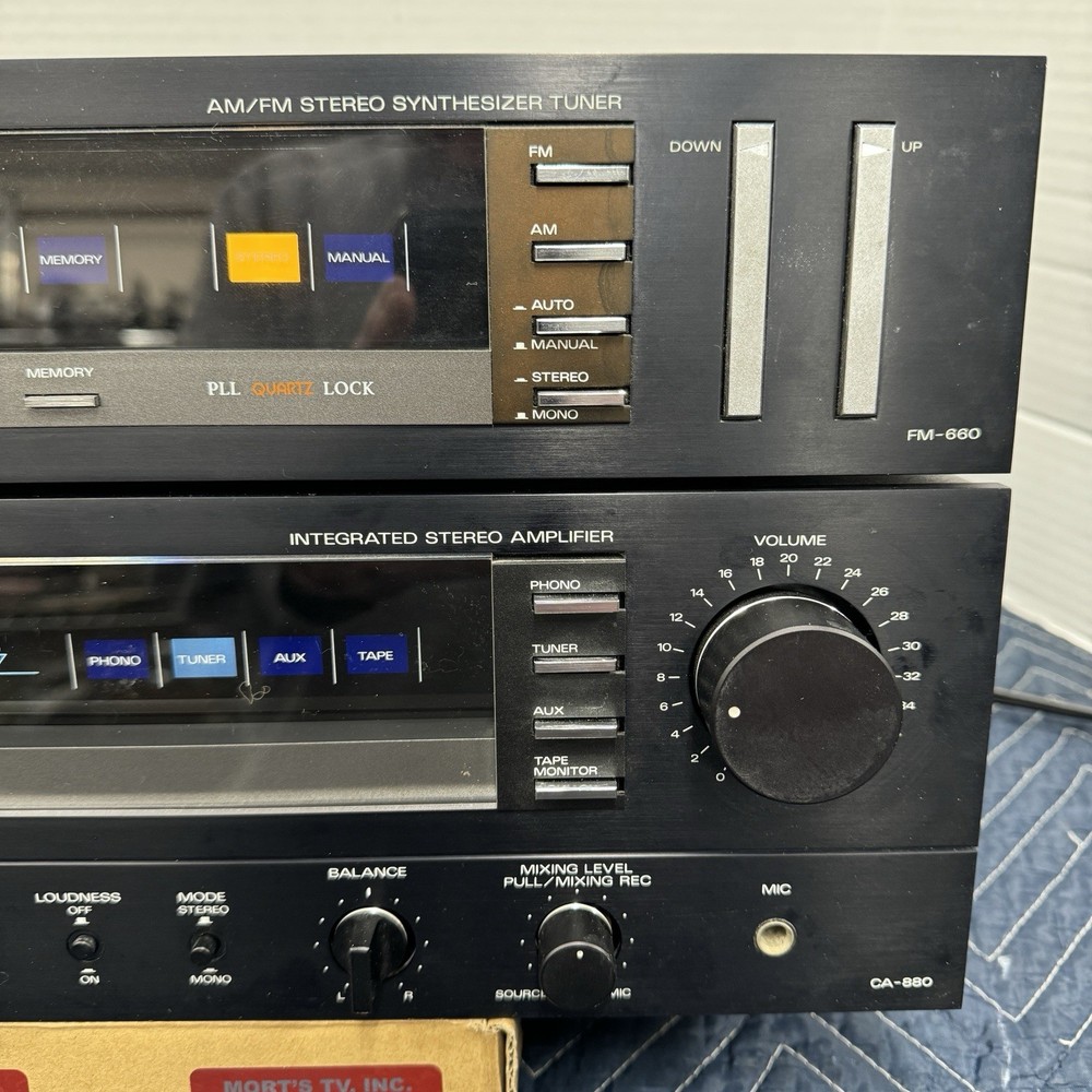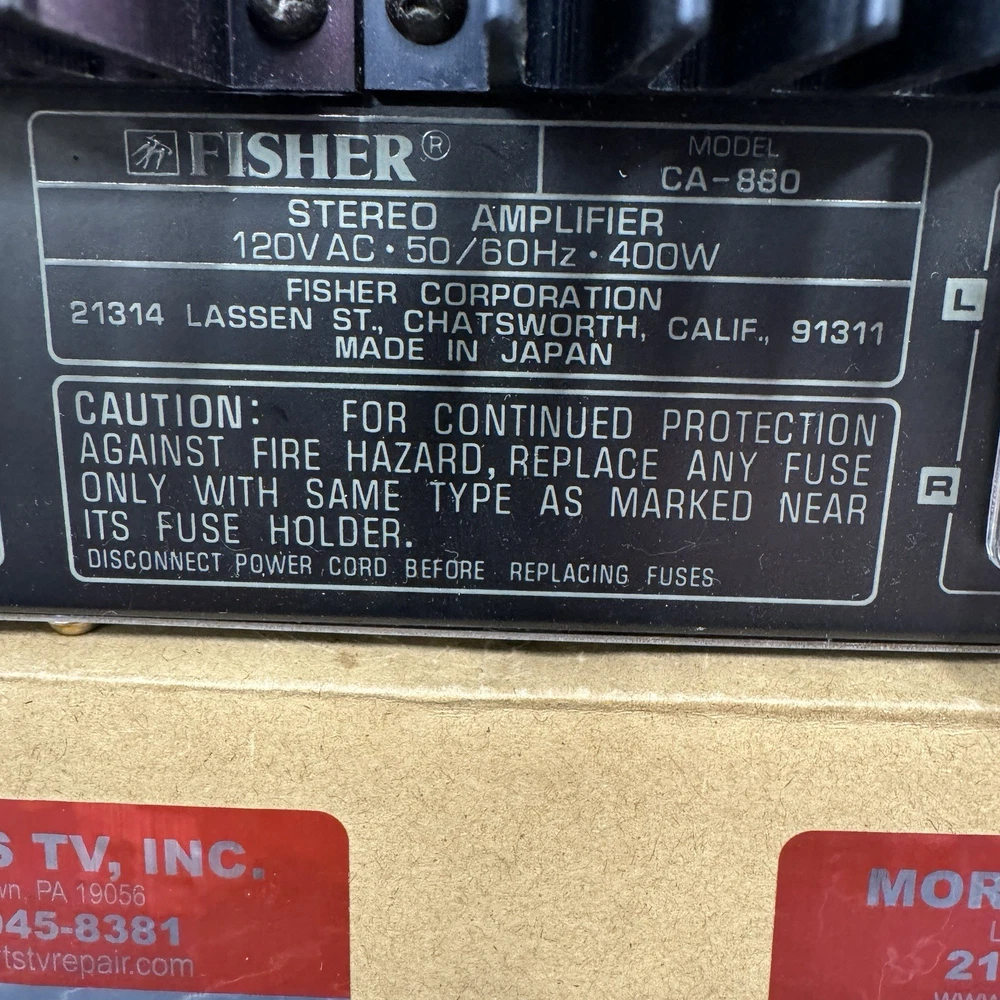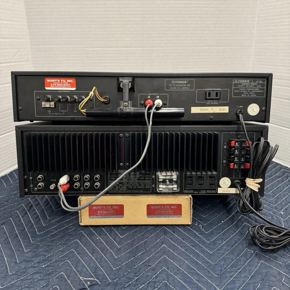 FISHER CA-880 AND FM-660 INTEGRATED STEREO AMPLIFIER AND MATCHING DIGITAL TUNER . 100 WPC. THIS INTEGRATED STEREO AMPLIFIER AND TUNER WORKS PERFECTLY AND IS IN VERY GOOD CONDITION INSIDE AND OUT. WE REPLACED ALL DEFECTIVE CAPACITORS AND ANY OTHER DEFECTIVE COMPONENTS. REPAIRED ALL POOR SOLDER CONNECTIONS. CLEANED ALL CONTROLS AND SWITCHES. ( WE HAVE BEEN IN BUSINESS FOR OVER 60 YEARS REPAIRING VINTAGE AUDIO EQUIPMENT.) IF YOU HAVE ANY CONCERNS, PLEASE CONTACT US PRIOR TO YOUR PURCHASE.