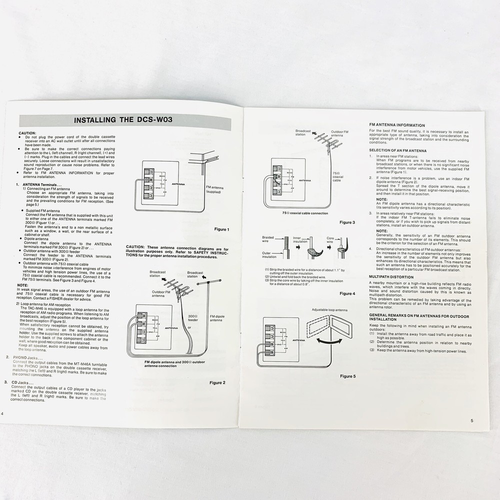 FISHER Studio Standard DCS-W03 AM FM Dual Cassette Receiver Stereo Turntable Speakers Operating Instructions