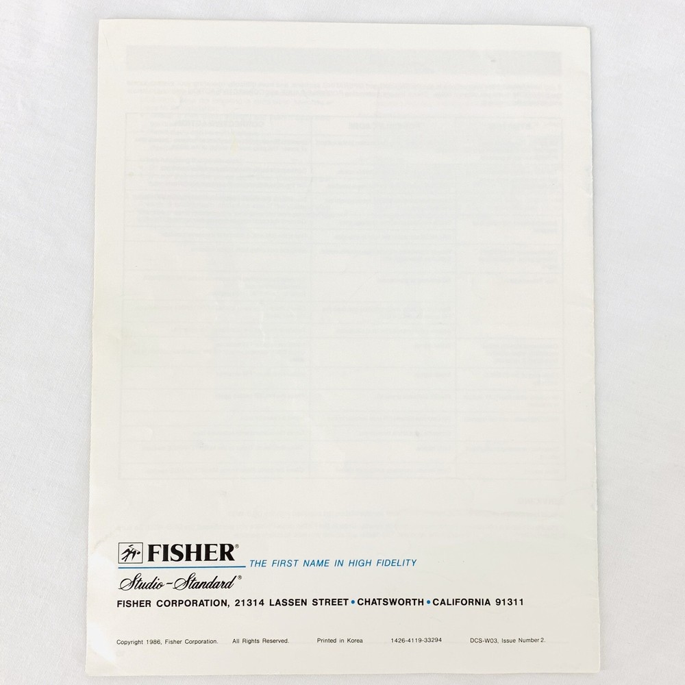 FISHER Studio Standard DCS-W03 AM FM Dual Cassette Receiver Stereo Turntable Speakers Operating Instructions...