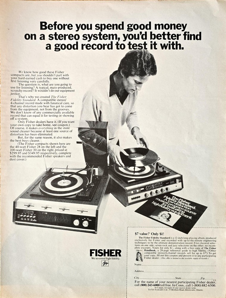 FISHER - FIDELITY STANDARD - 40 WATT- Record Player - 1972 VTG Print AD Approx. 13.5x10 inches 1972 Life Magazine These old advertisements are ideal for: Framing Collectors Historians Shops Man Caves Museums Home and Business Decor NOTE: **All advertisements are carefully removed from the source (magazines, newspapers, books, etc.) and are completely original. No copies, reprints or reproductions of any kind.** **Very good pre-owned condition with some wear. May have some age toning. May have minor wear for its age. As expected with vintage paper, there may be some natural darkening, creases and foxing may be present. See photos.** Please visit my eBay store for more vintage print ads and other collectibles.