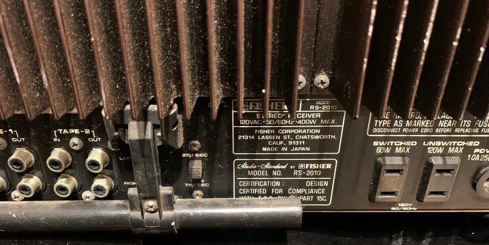 FISHER FM/AM Stereo Receiver RS-2010 For Parts AS IS- Does Not Power UP We Ship UPS and USPS, to the Lower 48 States depending on the item. Please, always view pics closely before bidding ! We are a reputable Stereo Store with 50 years experience. Professionally Serviced, Cleaned and Tested by our Technicians. All items are shipped fully Insured. World Class packaging guaranteed to arrive as shown in the pictures. Check the rates for your city and country. We ship to USA states directly. If you live in another country please read below for shipping details. ------------------------------------------------------------- International Shipping is available through Ebay. If you live outside of the USA, Ebay can estimate the extra charge To your postal code. We can not determine that for you!!!. We will ship to the Ebay Hub in Illinois and then they repack and handle customs forms and charge for their service on top of our price to ship to your country.