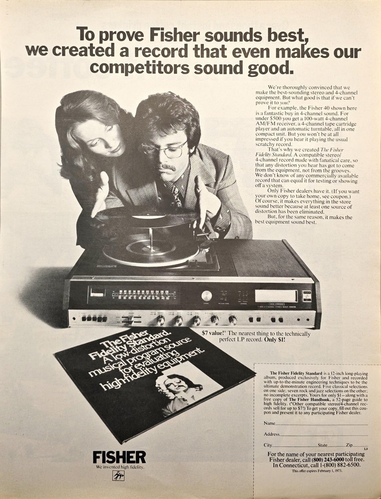 This vintage Fisher ad is a fantastic piece of history for any music lover or collector! The retro design captures the golden era of hi-fi, perfect for framing and adding character to man caves, shops, or home decor. The original print has some natural aging, giving it authentic charm. A must-have for enthusiasts of classic audio gear!