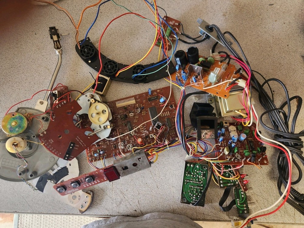 FISHER MT6360 TURNTABLE PARTS . EVERYTHING IN PHOTOS . THE PROBLEM WITH TURNTABLE WAS THAT IT WOULD ON SPIN. POWERED ON BUTTONS WERE WORKING . SELLING ALL PARTS IN PHOTOS. CHECK OUT VIDEO YOU CAN SEE IT RUNNING . REMOTE IS NOT IN THIS AUCTION BUT IT IS LISTED IN MY OTHER AUCTION.