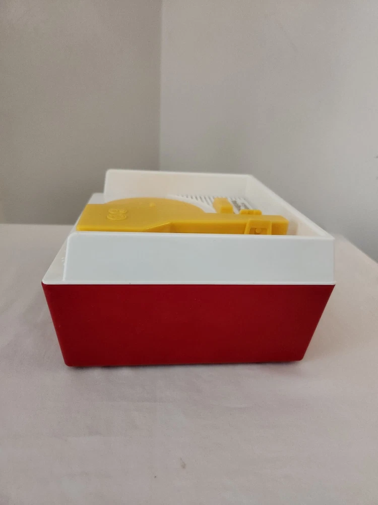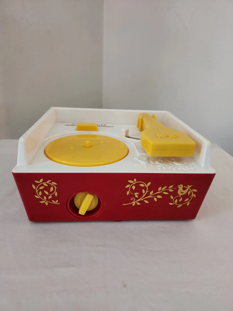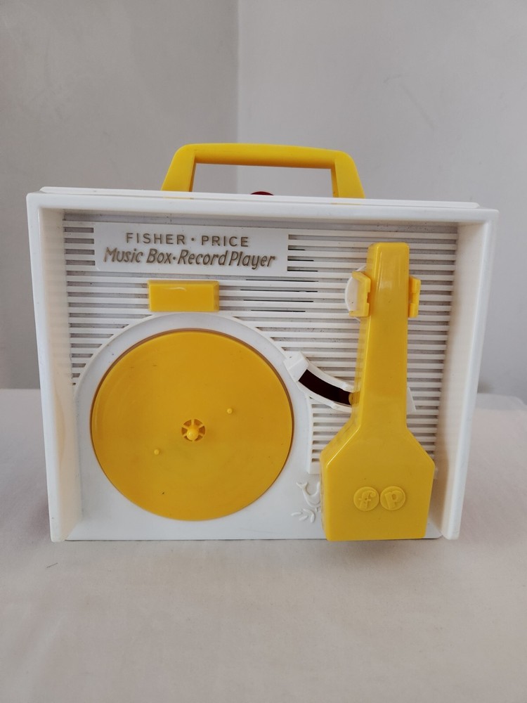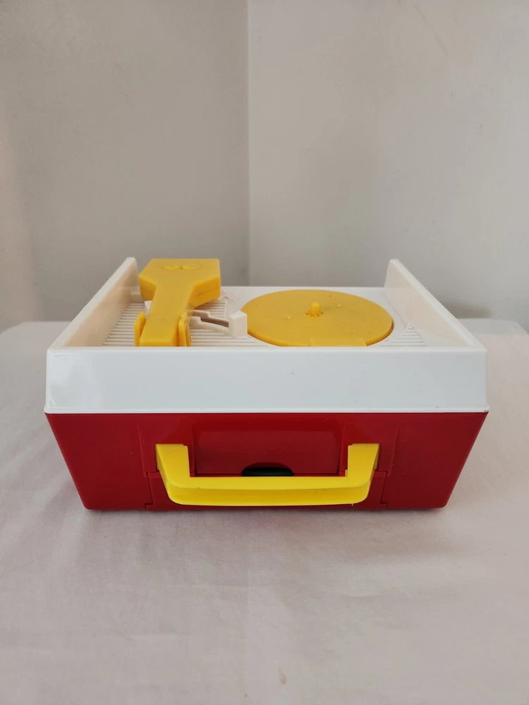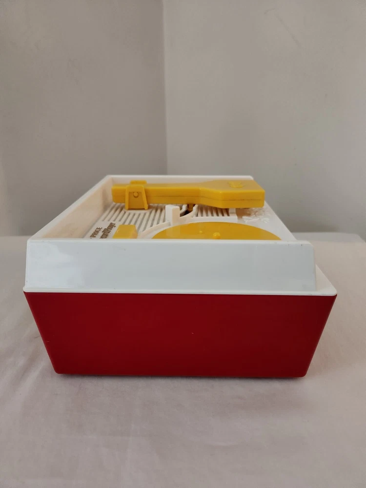 For sale as pictured: FISHER PRICE Red & Yellow Music Box / Record Player w/ 3 records Please be sure to read the Condition Description for more information regarding this item. * Tested and works (Note: Did not play both sides of each record) * Record storage space in back * Volume button underneath (near battery compartment) * Included: Record #1 - Humpty Dumpty & Jack and Jill Record #2 - Au Clair De La Lune & Twinkle Twinkle Little Star Record #5 - The Farmer In The Dell & Hickory Dickory Dock * Approx. Dimensions: 8 1/4"W x 7"D x 4"H * Copyright 2014 Mattel * 3 AA batteries required (not included) Great classic toy! ------------------------------------------------------------------ This item is described to the best of our knowledge, ability, research, memory, and/or eyesight. :) We make every attempt to identify and photograph the imperfections we observe. Please review the photos and remember to zoom in. Due to lighting conditions, the actual color may vary slightly from the photos. Don't hesitate to contact us if you have any questions or if you need additional pictures. Please take a look at our other items. You just might find something else you like! We do offer combined shipping. If you are pleased with your purchase and our service, we would love to have your positive feedback! If there is a problem, please let us know as soon as possible. We will do everything we can to resolve the issue and ensure that you are a satisfied customer! Thanks for your interest and consideration. We appreciate your business! Note: Because we try to recycle/reuse, please be aware that your order may be packaged/shipped in materials that do not match the contents.