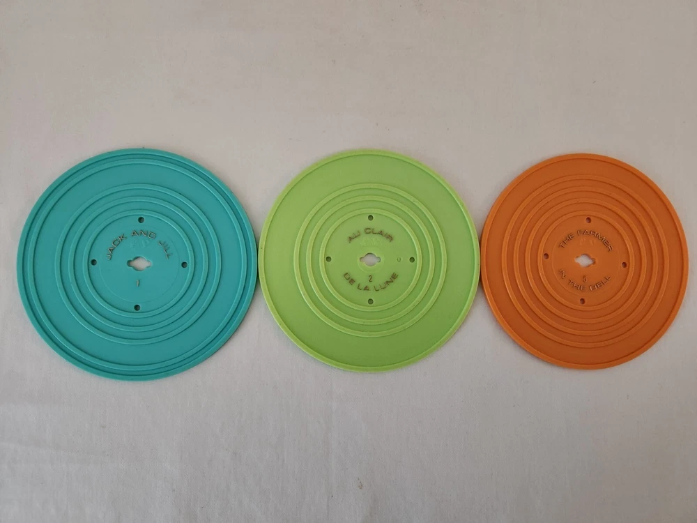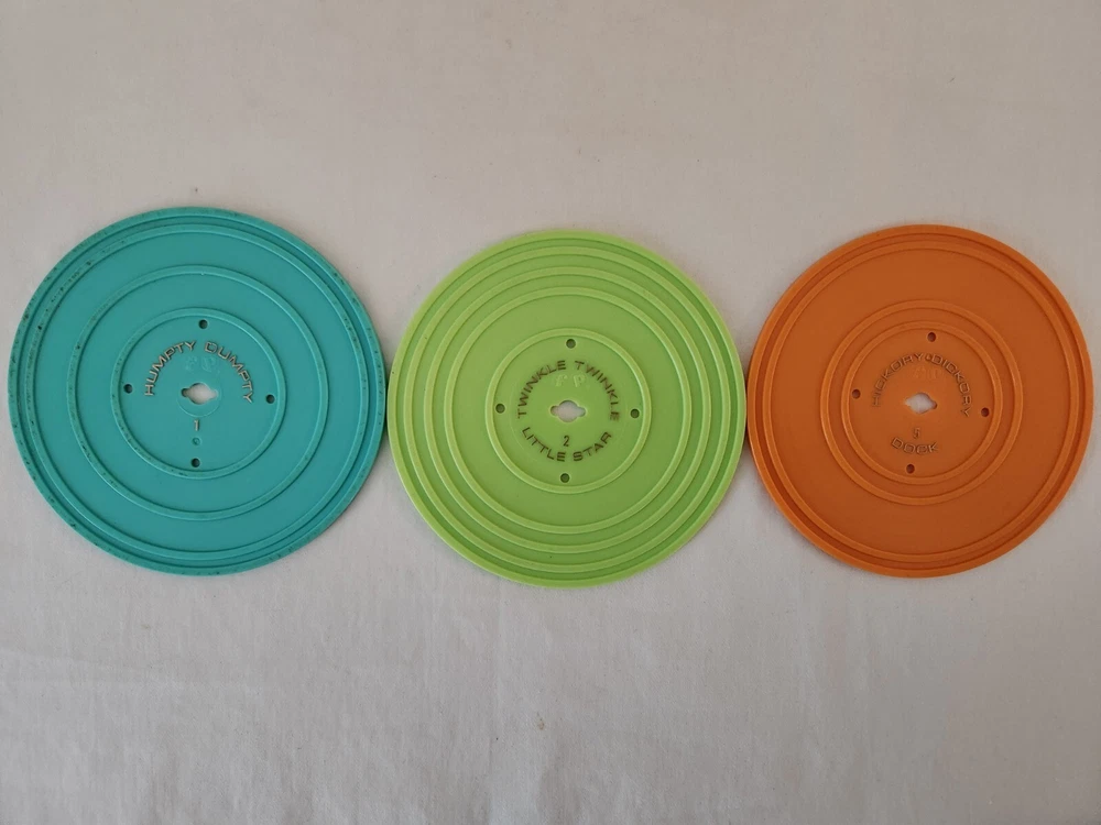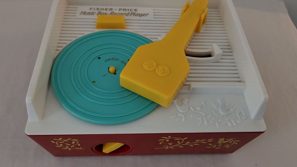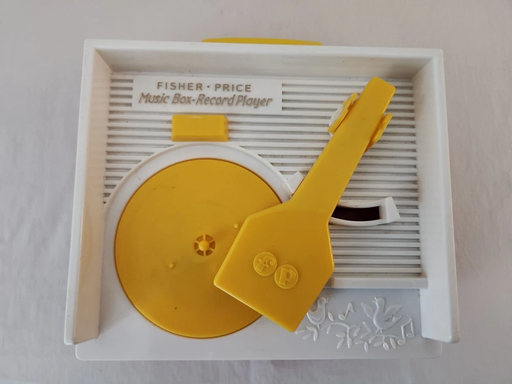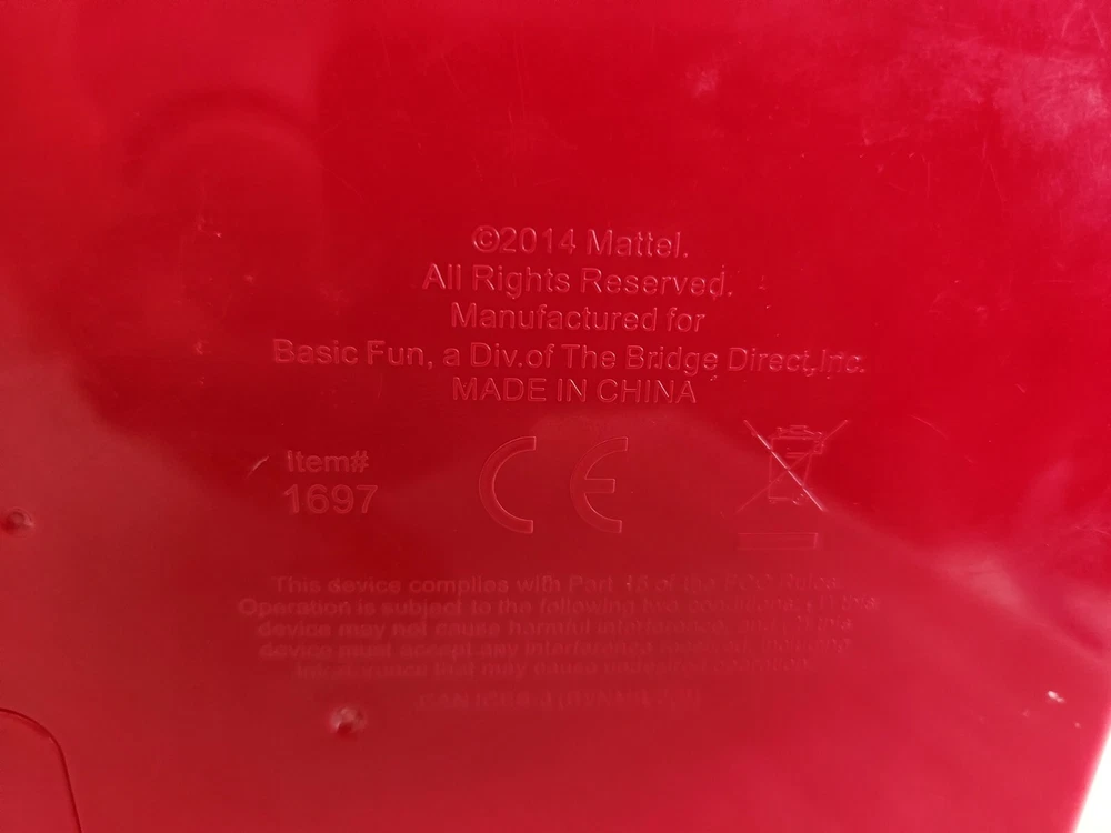 For sale as pictured: FISHER PRICE Red & Yellow Music Box / Record Player w/ 3 records Please be sure to read the Condition Description for more information regarding this item. * Tested and works (Note: Did not play both sides of each record) * Record storage space in back * Volume button underneath (near battery compartment) * Included: Record #1 - Humpty Dumpty & Jack and Jill Record #2 - Au Clair De La Lune & Twinkle Twinkle Little Star Record #5 - The Farmer In The Dell & Hickory Dickory Dock * Approx. Dimensions: 8 1/4"W x 7"D x 4"H * Copyright 2014 Mattel * 3 AA batteries required (not included) Great classic toy! ------------------------------------------------------------------ This item is described to the best of our knowledge, ability, research, memory, and/or eyesight. :) We make every attempt to identify and photograph the imperfections we observe. Please review the photos and remember to zoom in. Due to lighting conditions, the actual color may vary slightly from the photos. Don't hesitate to contact us if you have any questions or if you need additional pictures. Please take a look at our other items. You just might find something else you like! We do offer combined shipping. If you are pleased with your purchase and our service, we would love to have your positive feedback! If there is a problem, please let us know as soon as possible. We will do everything we can to resolve the issue and ensure that you are a satisfied customer! Thanks for your interest and consideration. We appreciate your business! Note: Because we try to recycle/reuse, please be aware that your order may be packaged/shipped in materials that do not match the contents.