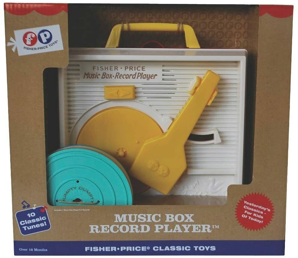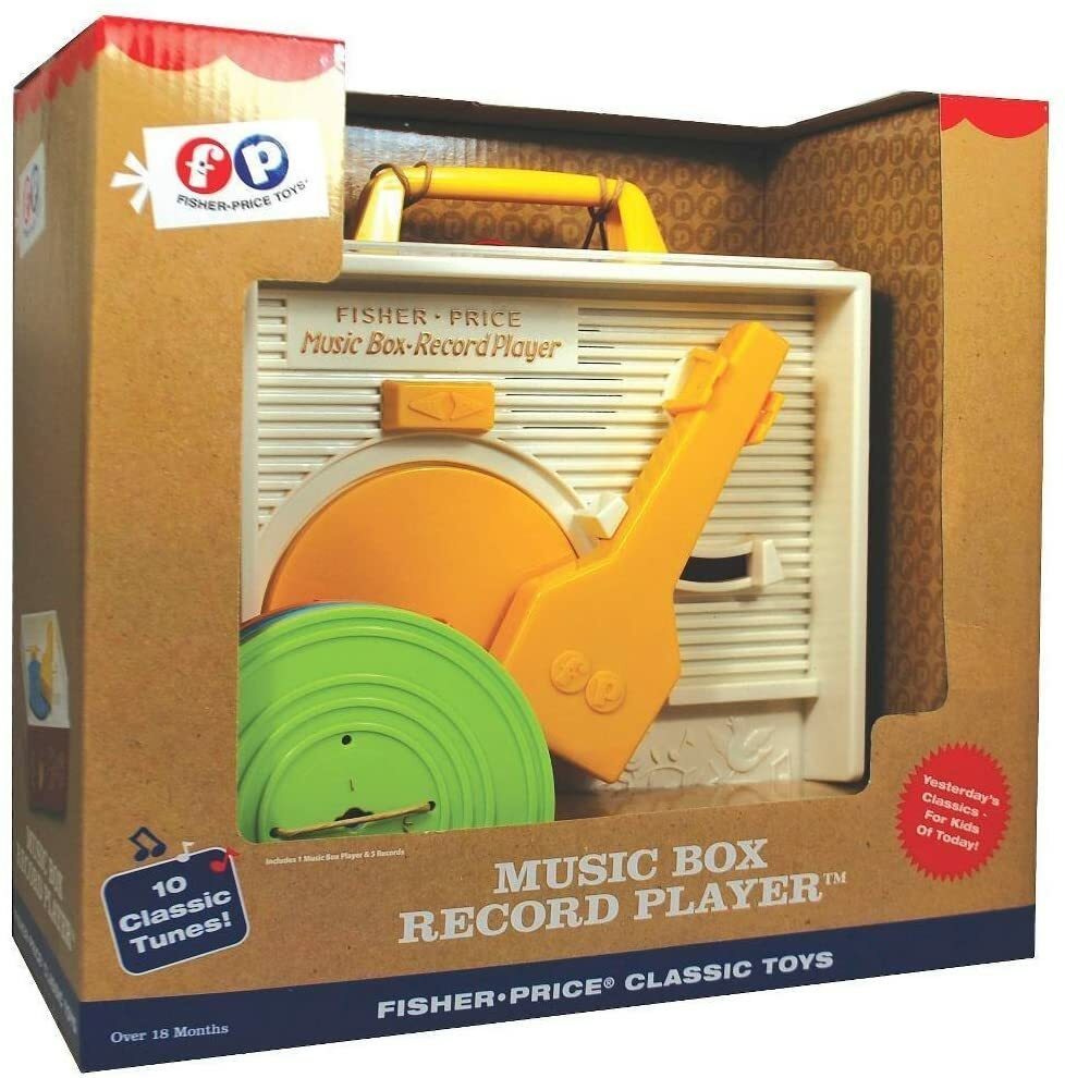 Brand New. Never opened Includes 1 Fisher Price Record Player, 5 Records Place 1 of the 5 double-sided records on the turntable, wind it up and place the "needle" on the record to hear the classic "music box" renditions of 10 timeless melodies Fantastic way to teach kids about music history and sound technology Kids' record player for children aged 3 years and up
