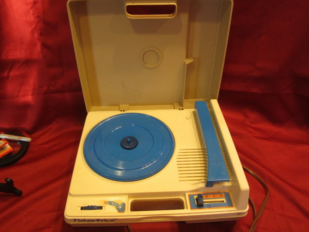 VTG 1978 FISHER PRICE PORTABLE RECORD PLAYER VTG 1978 FISHER PRICE RECORD PLAYER ALL IN ONE CARRY CASE MAKERS MAR AND DAT ON BOTTOM AND BACK MODEL #825 ON BOTTOM PLAYS 45S AND 33 1/3 VINYL RECORDS CENTER INSERT FOR 45 RECORDS IS PART OF THE TURNTABLE A BLAST FROM THE PAST GOOD USED VTG CONDITION WORKS TESTED DOES PLAY BUT NEEDS A NEW NEEDLE A LITTLE WEAR DUE TO AGE AND USE BUT STILL IN WONDERFUL CONDITION ALL REASONABLE OFFERS WELCOME BOX 31AA GAMES TOYS 12/13/22 MELS
