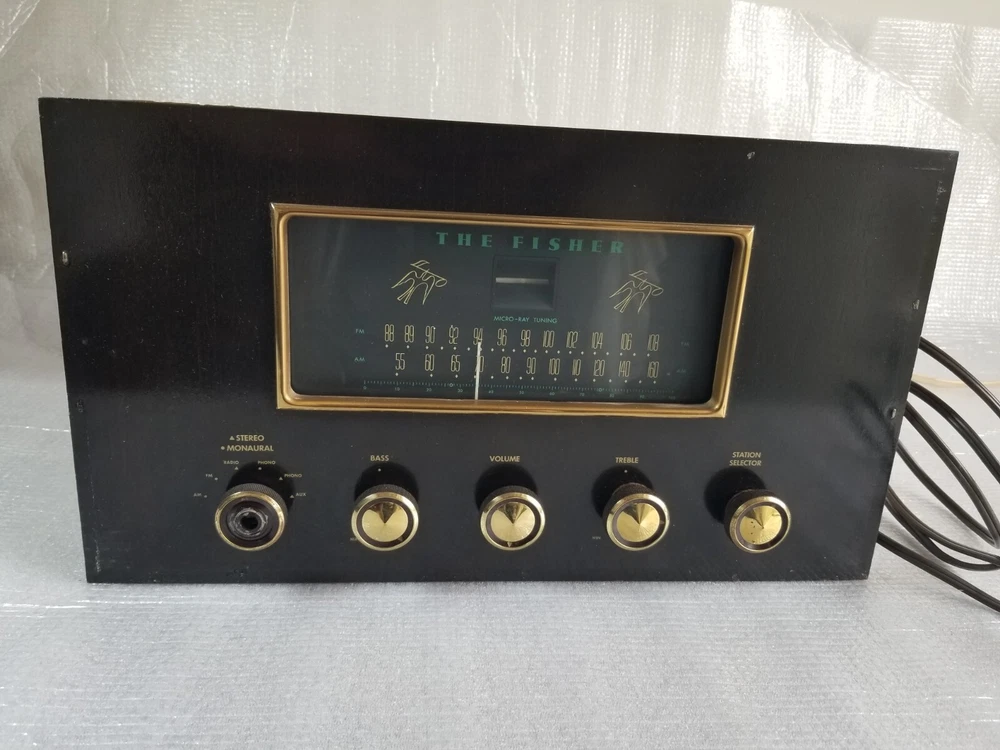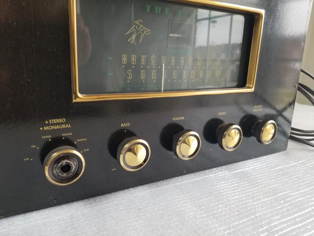 INFO: " .... turned out to be an R-30S. If you don't look closely the S can look like a 5. The R-30S is an interesting chassis from 1959. It has a mono tuner, a stereo preamp and a single channel EL84 output. It was intended to be paired with a 30-A monoblock housed in a separate 560 'Stereo Companion' speaker enclosure. I have one in a '59 Contemporary II console with the 560 both in my living room. I think it's a great system as long as you don't mind your FM mono. It doesn't have a magnetic phono input and will need a separate preamp unless you use a high output (ceramic) cartridge. The advantage of that is that you can use the phono input as an aux input - there is no EQ. " " The R-30-S was the 1959 chassis for the C-810 contemporary. The only real difference is the MPX jack and the additional preamp output for a "B" CHANNEL. The 560 companion (with the 30A amp) would connect to it and you'd get stereo from the Record Changer. Also with the addition of an external MPX unit you could wire it up for FM stereo. You'd wire in the MPX to the AUX RCA's and get MPX stereo. It's not as simple as all that but it can be done. Otherwise the R-30-S and the R20 are basically the same. Mr. FISHER gave you all kinds of options during the late 50's into the early 60's as Mono changed over to Stereo. Manual is at the FISHERCONSOLES site. http://www.fisherconsoles.com/contemporary II c810 service" This setup also included an outboard phono preamp for consoles equipped with magnetic cartridges , which Fisher sold separately as the PR 66.