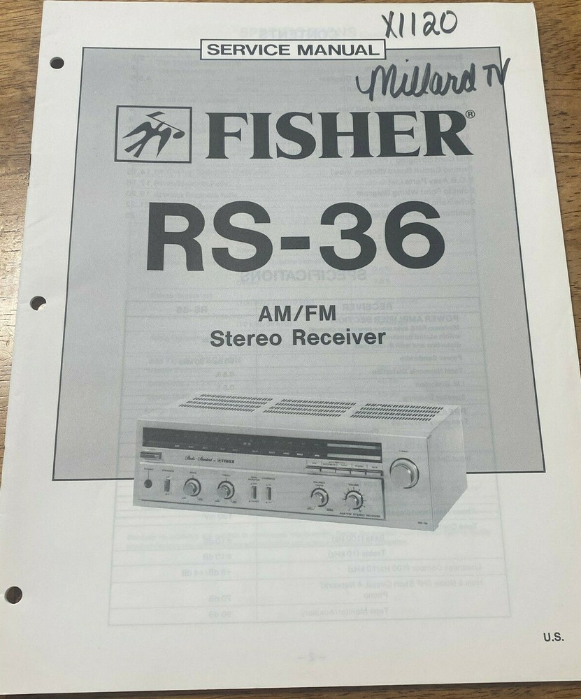 This is for an original FISHER service MANUAL, includes REPAIR INFO, part numbers and SCHEMATIC DIAGRAMS MODEL - RS-36 AM / FM STEREO RECEIVER VERY GOOD CONDITION, Doesn't look like it was ever used. WE HAVE NO STEREO UNITS, OR AMPLIFIERS LEFT!!! THESE ARE ALL THE FISHER MANUALS WE HAVE LEFT. IF YOU DON'T SEE IT i DON'T HAVE IT. We closed out our electronic Service Shop a few years ago and are selling off the manuals we have left, some of which are manuals we acquired from other service centers that have closed.. Please check our other auctions for other closeout clearance items. I will be listing them as quick as I can but will probably take several months to list everything we have left. Item will be shipped in an envelope. Shipping is FREE in the 48 States only. $14.02 I nternational shipping. PLEASE check our other auctions. We Give free shipping in the U.S. for each additional manual purchased. Item will be shipped USPS economic shipping and may take 1-9 days. If you want faster shipping please let me know. ITEM IS SOLD "AS IS"! Thank You for the bid, and GOD BLESS THE U.S.A .