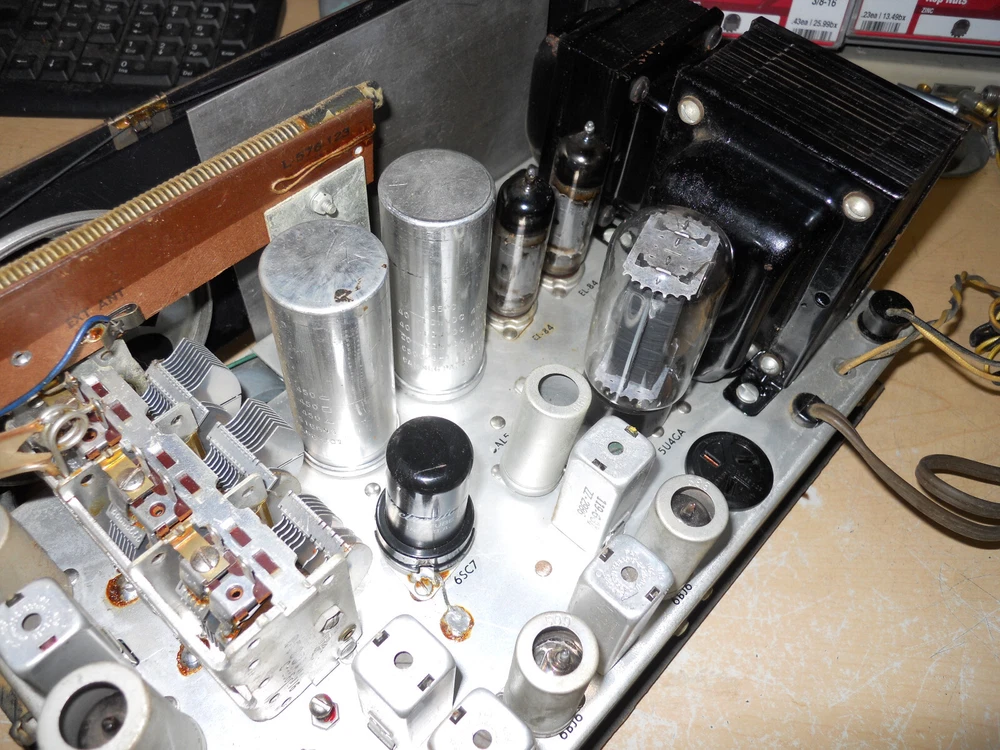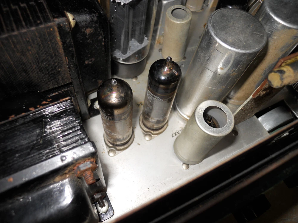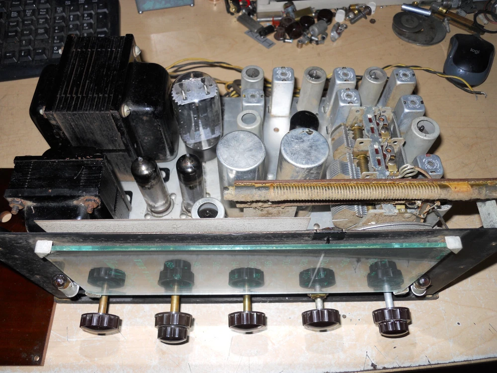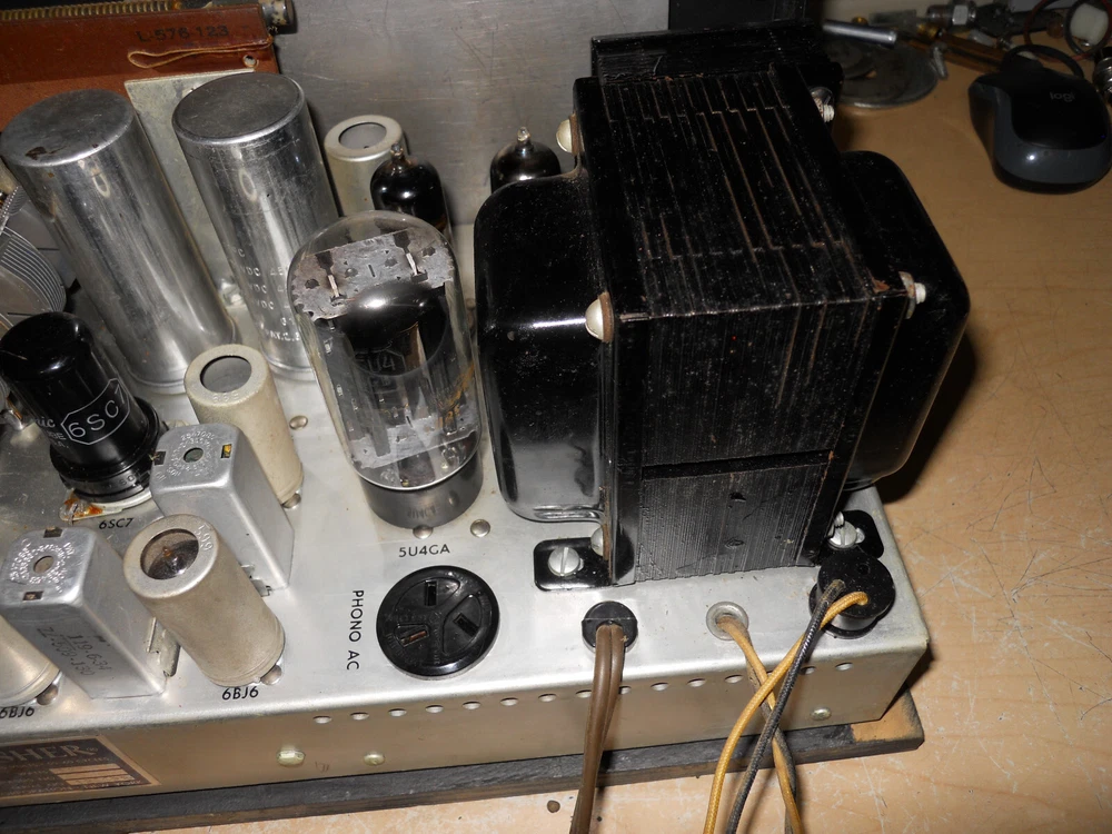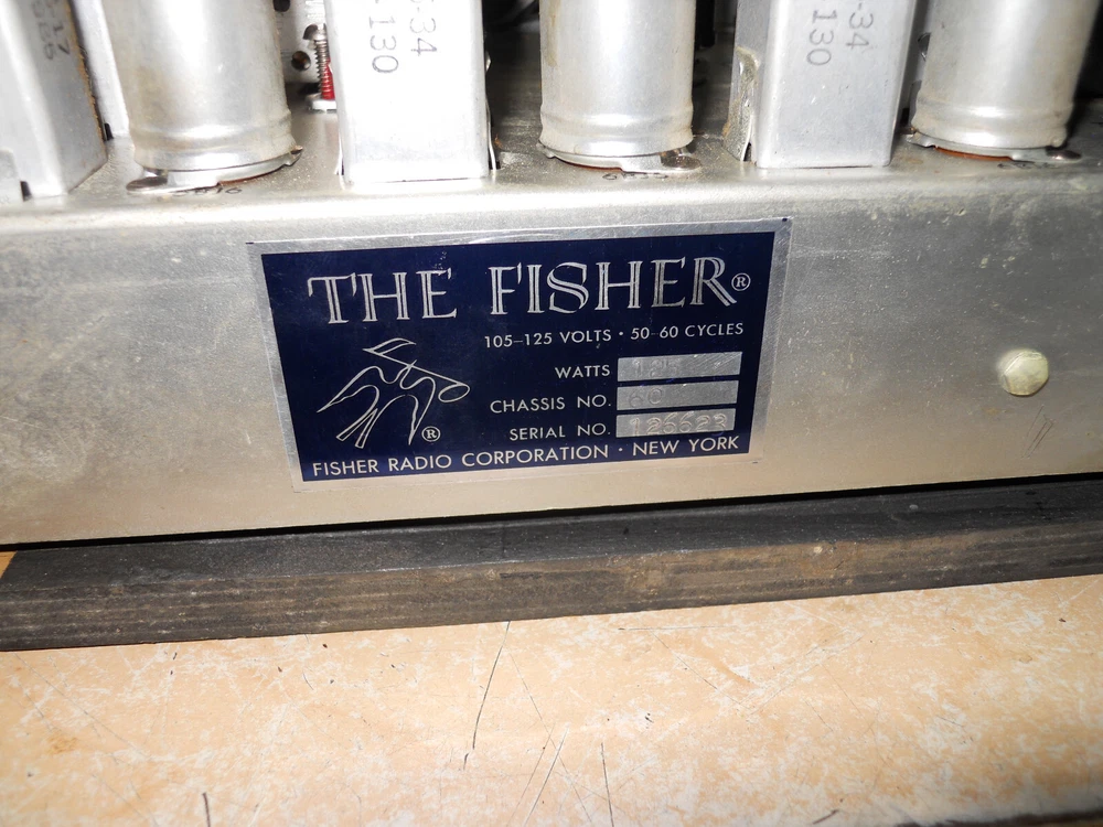 selling one fisher am-fm receiver with a pair of mullard 6bq5 outputs i tested it for a while on a good speaker it did work and sound good it is very clean as shown comes with the faceplate as this was in a console it also has a tv input i tried this as an aux input and it did work good it also has a phono input on the side i did not test it the corde on the back with the plug is the speaker leads the other cord was for a pilot light. still sold as-is because of age
