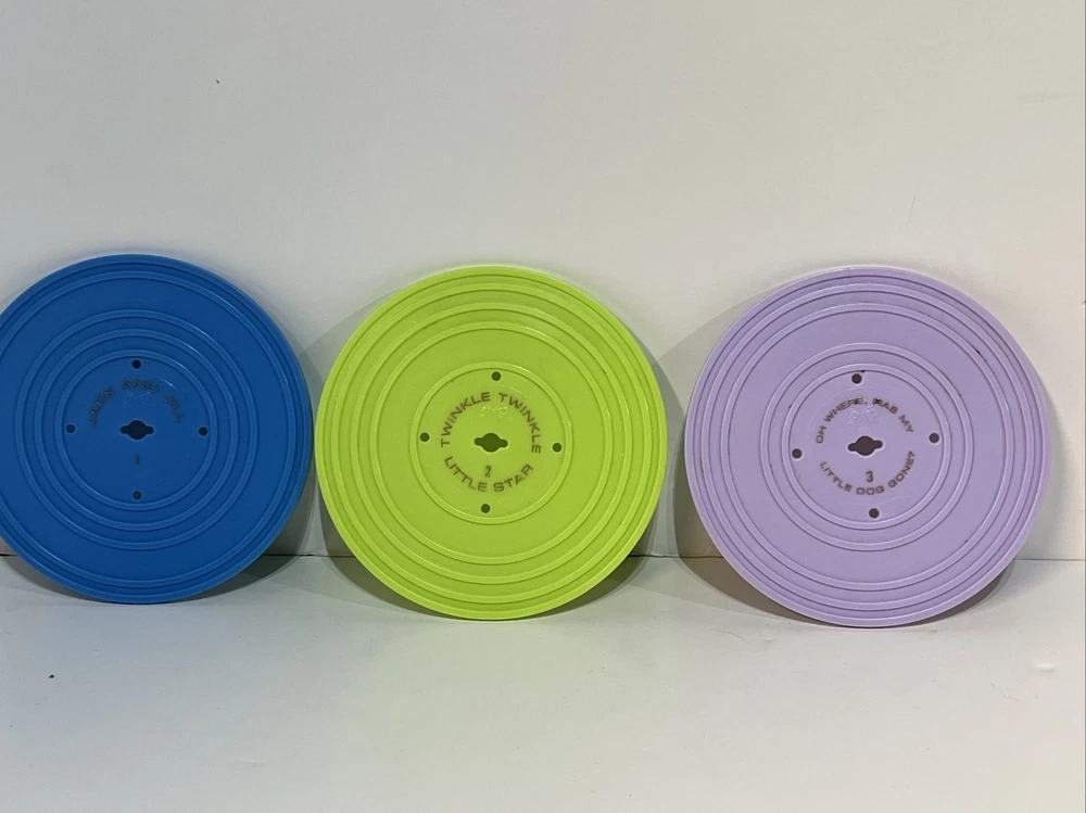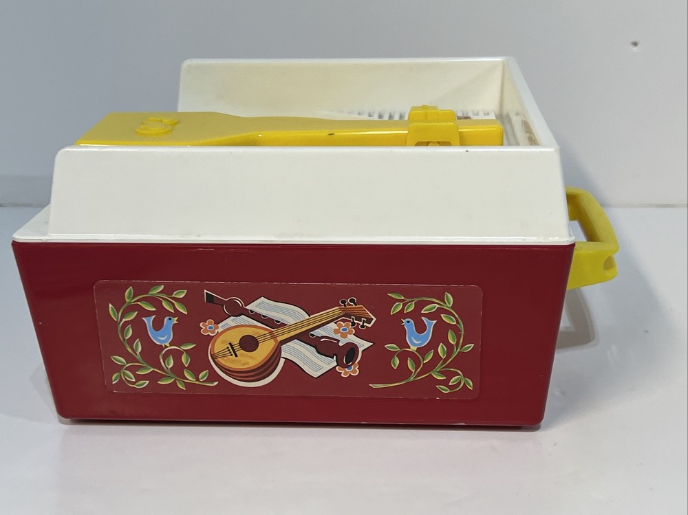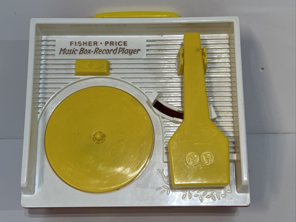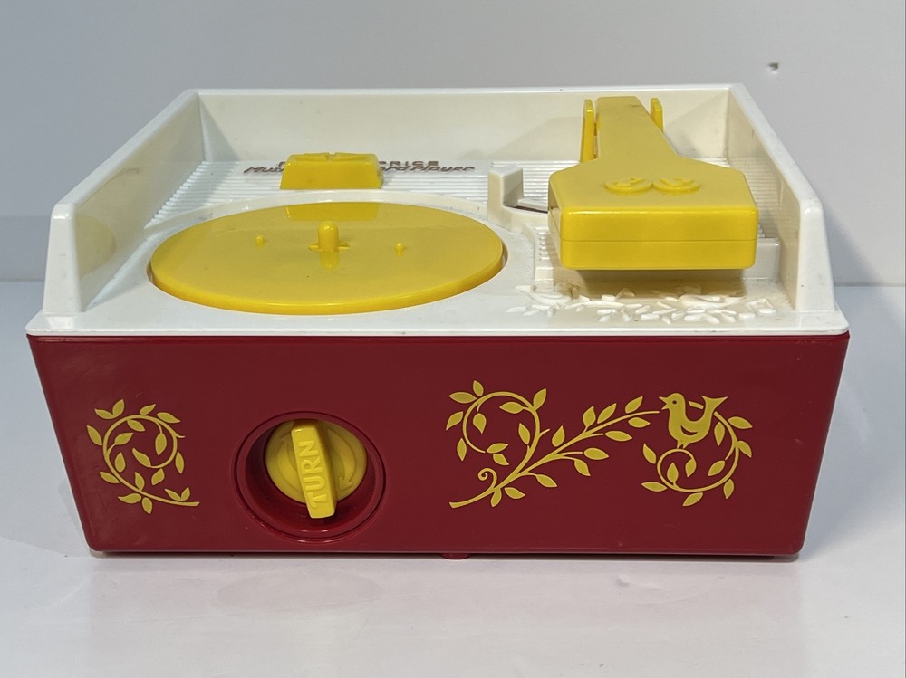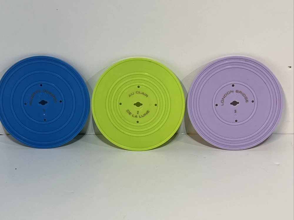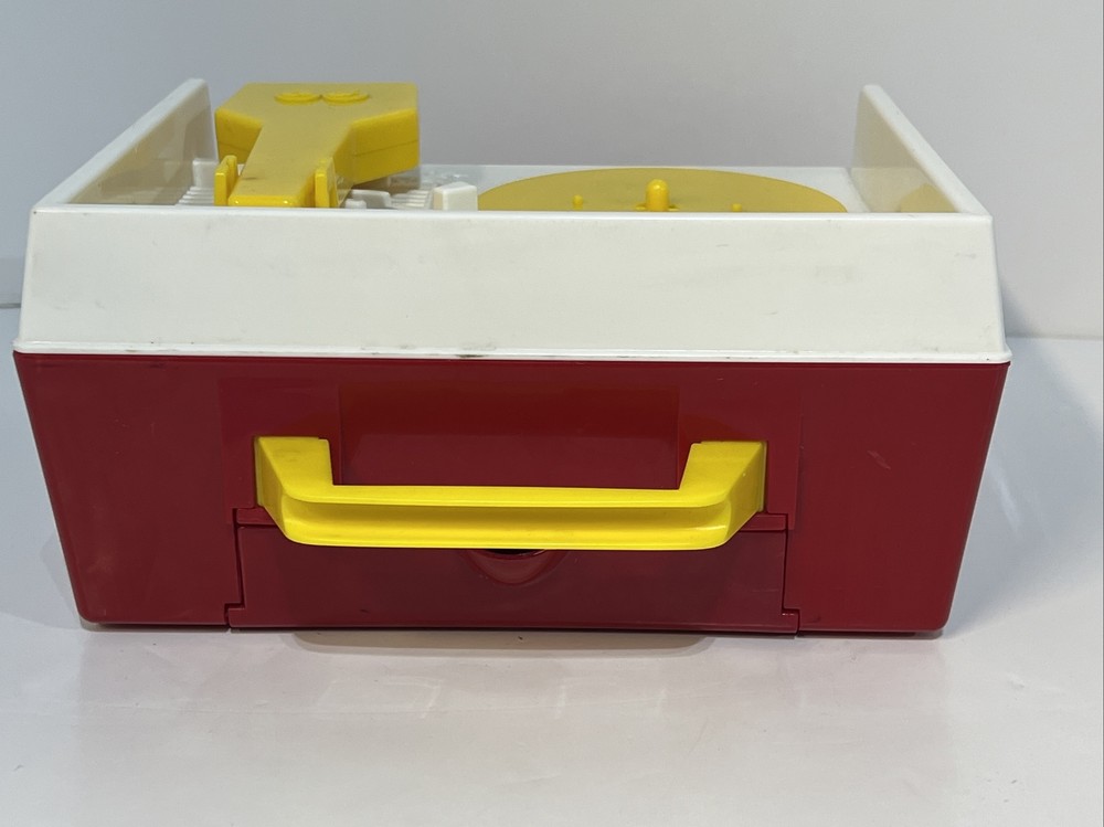FISHER-PRICE 2010 MUSIC BOX RECORD PLAYER 3 Records Tested WORKING. A great throwback to Fisher-Price toys this working music box record player takes three AA batteries (not included) Comes with three double sided records that plays Jack and Jill, Humpty Dumpty, AU ELAIR De la lune, twinkle twinkle little star, London bridge, oh where has my Little dog gone. Please see pictures for condition, please let me know if you have any questions or would like to see any additional pictures