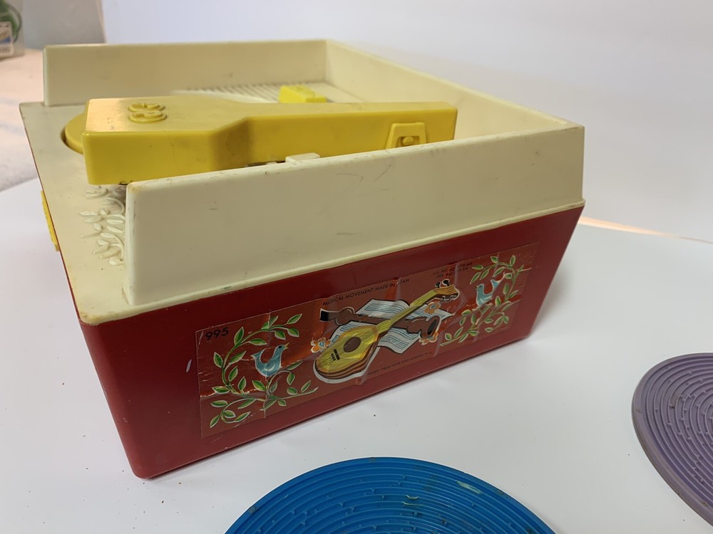 **FOR PARTS** Vintage Fisher Price Music Box Record Player with all 5 Records. Records: 1 - Jack and Jill 2 - Twinkle Twinkle Little Star 3 - Oh Where , Has My Little Dog Gone? 4 - Children's Marching Song 5 - Hickory Dickory Dock Love4Whimsy believes that every treasure deserves a good home. Hope you'll find something that catches your fancy. Thanks and have a great day! (ref: D-258)