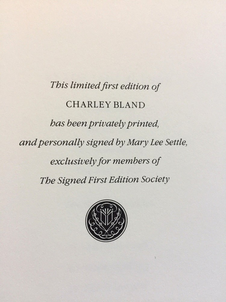 STORY OF FUTILE LOVE BY ACCLAIMED SOUTHERN WRITER - SIGNED BY AUTHOR MARY LEE SETTLE WAS AN AMERICAN WRITER BORN IN WEST VIRGINIA who led a full and varied life. A novelist and non-fiction writer, she was a 1978 winner of the National Book Award for her novel Blood Tie and she was a founder of the annual PEN/Faulkner Award for Fiction . In the Thirties she hoped to parlay her good looks into a career in modelling and film and got a screen test for the part of Scarlett O'Hara in Gone With the Wind . But the part went, of course, to Vivien Leigh . In World War 2, she joined the British Women's Auxiliary Air Force and later the Office of War Information . She lived for many years in England, Canada and Turkey. She died in 2005 at the age of 87. HER FAME WAS TO COME FROM HER EXPRESSIVE WRITING, most notably The Beulah Quinte t novels which focus on the history of her home state. The book we offer here`- Charley Bland - was published in 1989. It has been called a bittersweet story of doomed love, a narrative about a woman who returns from Europe to West Virginia and her relationship with her love of the past. Like many novels set in the South, the tale is suffused with local culture and sensitivities, and by the tensions between the old and the new in the region . THIS BOOK WAS PUBLISHED WITH ALL THE CARE AND ATTENTION TO DETAIL that we came to expect from The Franklin Library. It is one of Franklin's Signed First Edition series and it is bound in black-dyed leather with a bold and modern design pressed in gilt on both the front and rear covers. Elements of the design are continued on to the spine which has three raised hubs. The sewn-in ribbon page marker is in jade green and contrasts nicely with the cover's color. The striking frontispiece illustration by Michael Dudash i s rendered in black-and-white. The book appears to have been hardly touched down the years - but there is a scratch mark on the gilded front page edge th at may have been made when the book was removed from its plastic wrapper. This minor flaw allows us to reduce the price. Mary Lee Settle's signature is written boldly in ink on an inside page (see picture above) . FRANKLIN VOLUMES STAND OUT ON LIBRARY SHELVES THAT INCLUDE CHOICE ITEMS of modern writing. At a time when inexpensive books are readily available in paperback as well as affordable hardcover, many book lovers seek leather-bounds like this one for their collections simply because they are so pleasing to handle, see and own, and to give - or to receive! - as very special gifts. The book is in fine condition and we are happy to include it among the books in our inventory. + All books sold by Mackie Books are packed in bubble-wrap to guard against accidental damage during shipping. This book will be shipped in a sturdy cardboard box. + Click here t o see other listings by Mackie Books on eBay, including numerous books quality books published by the Franklin Library, the Easton Press, the Heritage Club and other high-end publishers. + We ship internationally through eBay's Global Shipping Program. + The illustrations we post with our eBay listings are from the actual book on sale and are not stock pictures. + We like to get your books delivered in the way we described on eBay. This means careful packaging - our specialty. We hate bumped corners as much as you do!