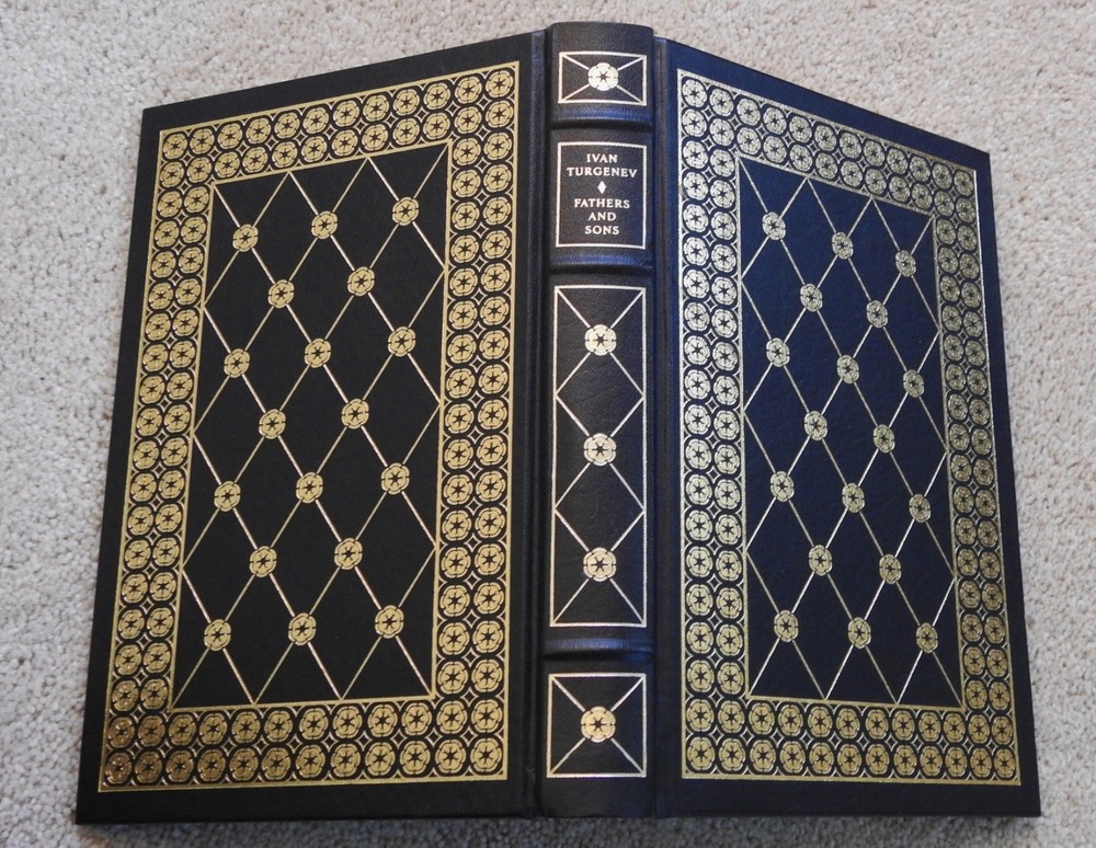 from Wikipedia about Franklin Press:" The Franklin Library, the distributing arm of the publishing division, The Franklin Press, of the The Franklin Mint, was the nation's largest distributor of great books produced in fine bindings for book collectors... " The book offered in this auction is leather bound ; with gilt decoration on front and rear, gilt lettering and decoration on raise banded leather spine) all edges gilt, decorated end papers. TITLE : Fathers and Sons AUTHOR : Ivan Turgenev PUBLISHER/COPYRIGHT: this edition The Franklin Library 1984 ILLUSTRATIONS: yes, a few by Elaine Raphael & Don Bolognese DIMENSIONS: approx 6" x 9" x 247 pages CONDITION: Excellent condition. Interior clean and unmarked by former owner. (blank bookplate inside front cover, see photo...new owner can fill with his/her name, or leave blank) CONTENTS : classic literature by noted author in a fine binding. Great to read, and look stunning in your personal library.... Check out my other items as I frequenlty list related items in the same week! PLEASE CHECK MY EBAY STORE....I PLACE MANY ITEMS IN THE STORE, WHICH DOES NOT BENEFIT FROM EBAY SEARCH, SO YOU MAY FIND A TREASURE THERE! b134
