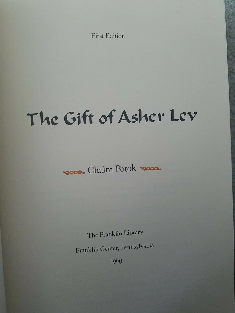 FRANKLIN LIBRARY The Gift of Asher Lev SIGNED by Chaim Potok LEATHER BOUND. It shows no signs of damage. Please view pictures for details LOCATION B8