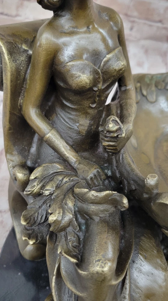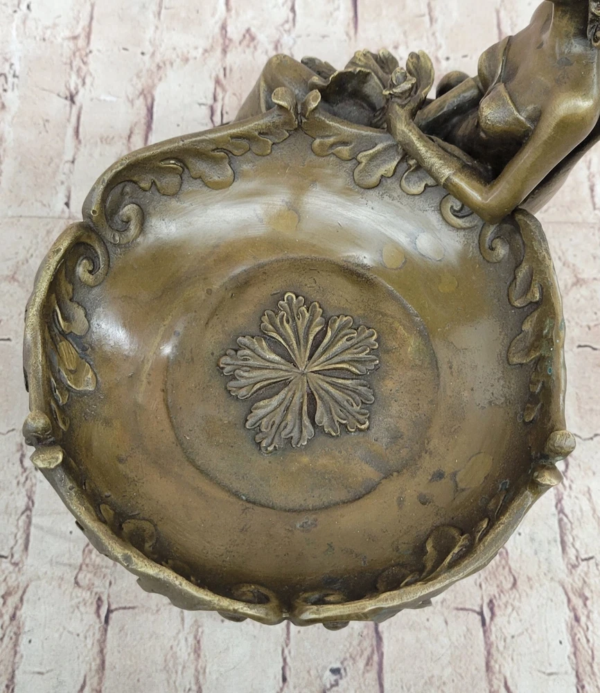 Condition: This sculpture is in perfect condition Bronze Dimensions with Marble Base: Height 11"" X Width 12.5"" Marble Dimensions: Diameter 10"" Height without base:10"" Weight:22 LBS Inventory:47YRD134113274 Charming Composition and Artistic ExpressionThis captivating bronze sculpture beautifully showcases a young girl as the central figure in a delightful and artistic composition. Reclining with an air of relaxed elegance, she holds an oversized, stylish plate on her lap, with her flowing skirt cascading behind her in a graceful manner. The half-nude figure exudes a sense of natural beauty and innocence, while the intricate designs on the plate add an extra layer of visual intrigue to the piece. The artist has skillfully captured a moment of serene contemplation, making the sculpture a charming addition to any space.Expert Craftsmanship and Attention to DetailCrafted with exceptional precision using the revered ""Lost Wax Method,"" this sculpture reflects the meticulous attention to detail that characterizes the work of master sculptors. From the delicate curves of the girl's form to the elaborate patterns adorning the plate, every element of the sculpture has been thoughtfully executed. The rich bronze finish, paired with the sleek black marble base, enhances the overall aesthetic, providing a striking contrast that highlights the sculpture's intricate details and enhances its visual appeal.A Unique and Collectible Piece of ArtSigned by the artist Fisher, this sculpture not only stands as a testament to the artist's skill but also adds to its value as a collectible piece of art. Its distinctive design offers a fresh and unique perspective on traditional statuary, making it a standout addition to any collection. Whether displayed as a centerpiece in a home or as part of a larger art ensemble, this sculpture invites viewers to admire the fusion of creativity, craftsmanship, and elegance that it embodies, making it a cherished and admired piece in any setting. Art Noveau Decorative Business Card Holder Bronze Sculpture Figurine Deal www.bronzhaus.com Video will open in a new window Using the eBay App? Paste link into a browser window: [isdntekvideo]