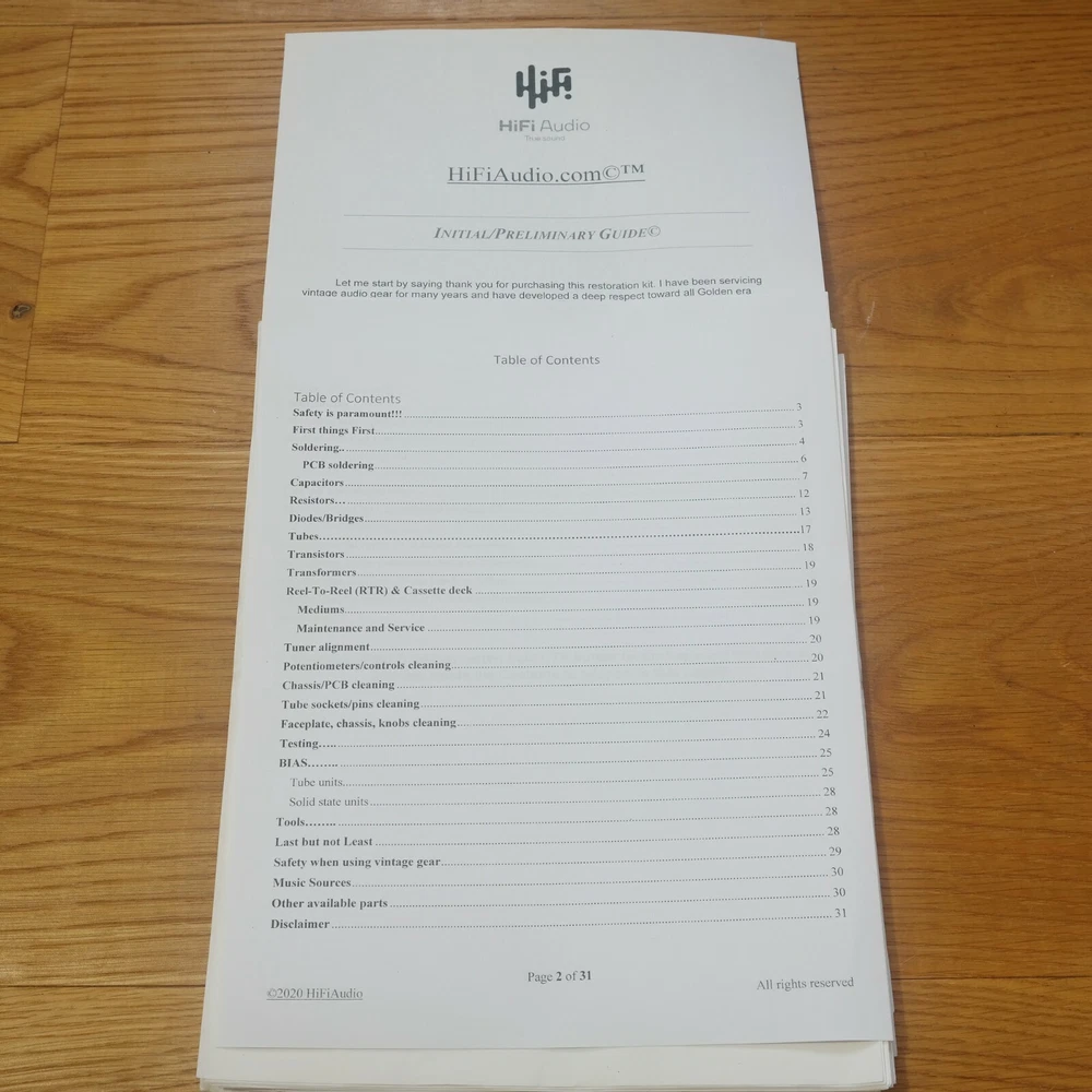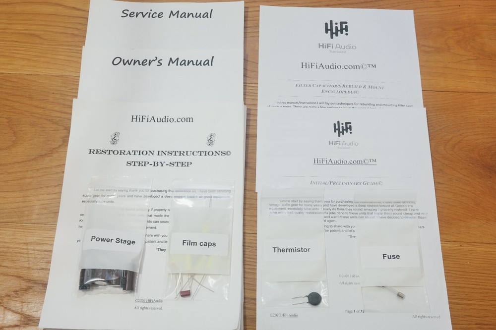 The scarcity of good, honest techs who can do good and reasonably priced restoration/rebuild of audio equipment inspired me to create this restoration kit. In today's day and age, it is difficult to find a knowledgeable technician who can service your audio gear properly. I have seen many poor quality restorations of equipment that cost way too much for their owners. In 99% of the cases, only a few parts were replaced, instead of a full and proper restoration job. A proper restoration must replace all electrolytic, paper, film, oil capacitors. Do not fall for partial kits. This is not a good or proper way to restore your audio equipment. It is the same as with car tires; one should never replace just one tire and keep the other worn-out tires on. A proper rebuild requires a full recap of all oil, paper, lytic capacitors. On the other hand, if one succeeds in finding a good tech, the wait time is usually 6-12 months for the unit to be serviced, and costs are sky-high. I have been servicing audio equipment for many years and have developed deep respect for all good equipment. Knowing how amazing and warm these units can sound, I decided to put together this kit. It includes very good upgrades and improvements that must be done to the unit. This restoration kit will make a huge difference in the sound quality. All the parts are of high-quality Japanese Nichicon / Rubycon / WIMA / IC / United Chemi capacitors. I am extremely particular about the quality of the parts provided in this kit. Knowing how many bogus/fake caps, diodes, resistors, etc. are out there, I source all the parts from reputable wholesalers and buy them in bulk. Vintage audio equipment has the potential to deliver rich and authentic sound when it is properly restored. Not only can it enhance your listening experience, but it can also evoke memories and bring joy to your life. Let's work together to bring your vintage gear back to its full potential, and make sure you have the music you deserve. ♩♬♫♪♫♩♬ “They Shall Have Music”- Avery Fisher Included in this kit: 1. Power/Filter stage capacitors ( Nichicon / Nippon / United Chemi) electrolytic capacitors. 2 x custom made PCB adapter plates to help one replace the multi-section can capacitors. Note, the image with silver multicap cans shown restaffed with new caps is for illustration purpose only. 2. Detailed instruction with colorful images, schematics, manuals (all of these are in electronic form, I consider these much better than printed version due to zoom availability). 3. Schematics (all of these are in electronic form, I consider these much better than printed version due to zoom availability). 4. Complete audio path upgrade with high quality WIMA or IC (Illinois capacitor) film capacitors. 5. Parts for complete recap of all the electrolytic capacitors. 6. Complete recap of all oil, film, paper, lytic caps. 7. fuse/s 8. Instructions on how to clean the chassis. 9. Instructions on how to clean a faceplate 10. Instructions on how to polish knob covers. 11. Support/help to a reasonable extent in case you need it. (This is what makes us different from other sellers.) The custom-designed PCB boards simplify the restoration process for multi-capacitor can capacitors in vintage audio equipment. Clearly labeled with polarity markings and mounting guides, they ensure precise assembly and seamless integration into your restoration project. These PCBs are also designed with cuts and openings to accommodate the original multi-section capacitor covers, allowing them to be reinstalled and preserving the authentic vintage look. An essential addition for maintaining both authenticity and functionality in vintage audio gear. We also offer a great selection of Restoration Kits , LED conversion kits , Volume Controls , Rotary Switches and other rare/unique parts; Make sure to check our store ---------> LINK (Use the search bar inside the shop to find what you need faster) We may also be interested in purchasing your equipment