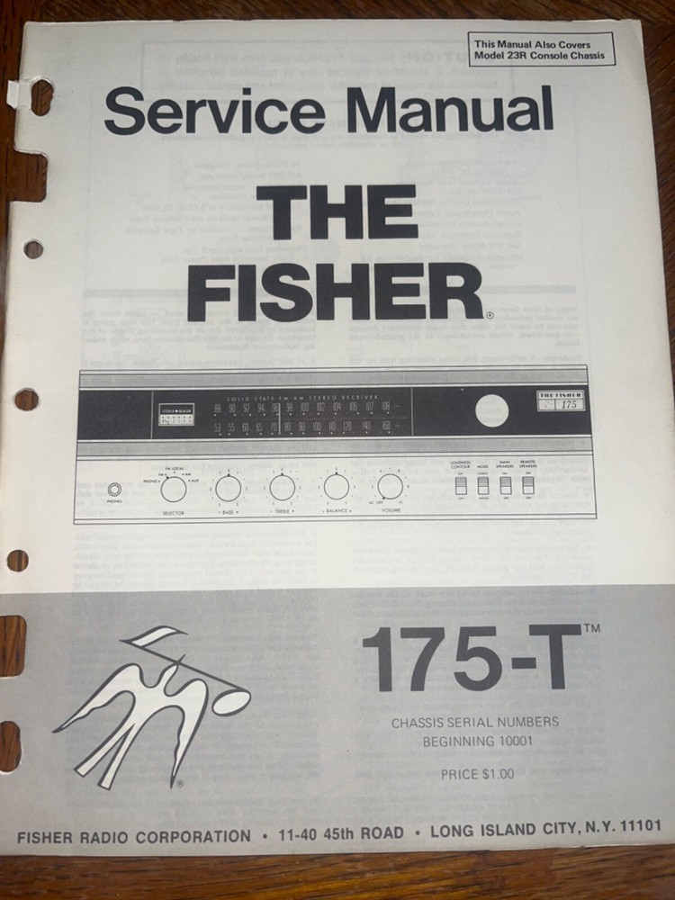 I am selling an Original Fisher 175-T AM-FM Stereo Receiver Service Manual ..... Item will be shipped Media Mail..